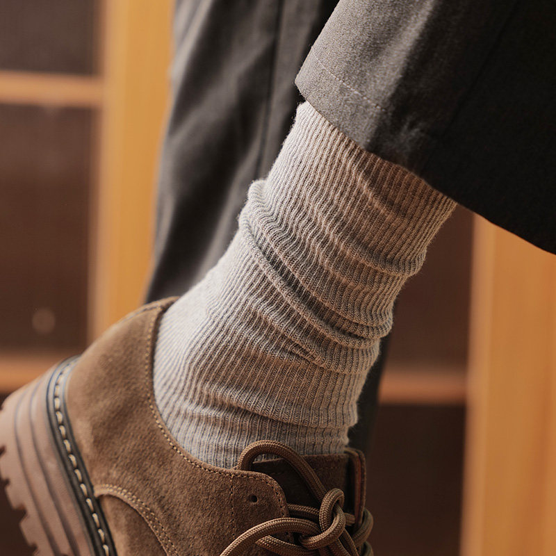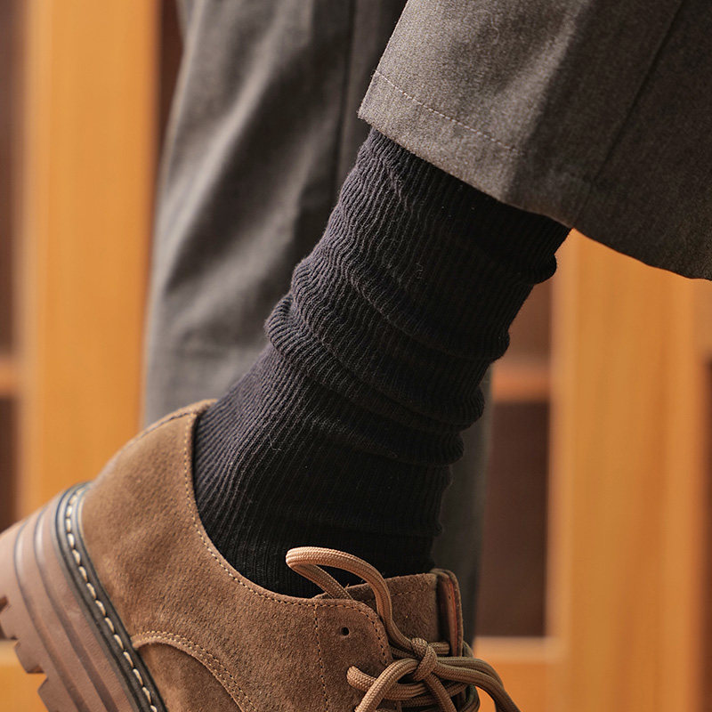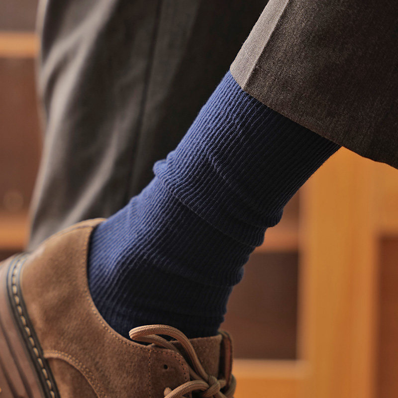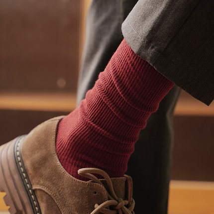 安克拉红袜子男款夏薄款高帮长袜纯棉双针中筒西装皮鞋商务中筒袜