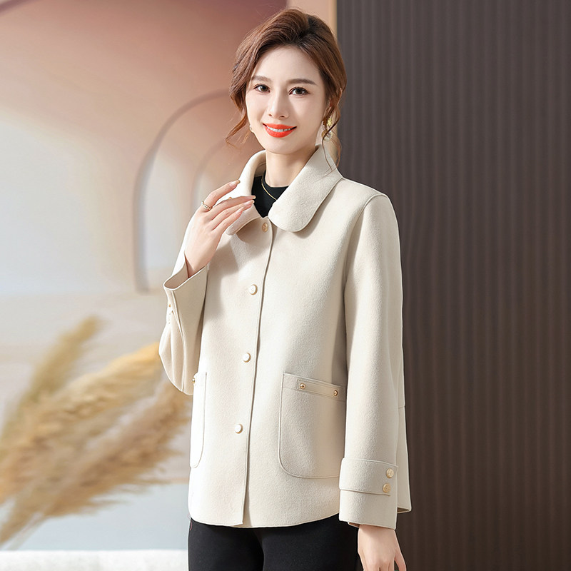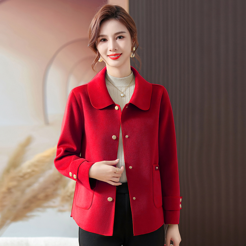 时尚妈妈秋装外套气质女士短款双面呢子大衣中老年女装人毛呢上衣