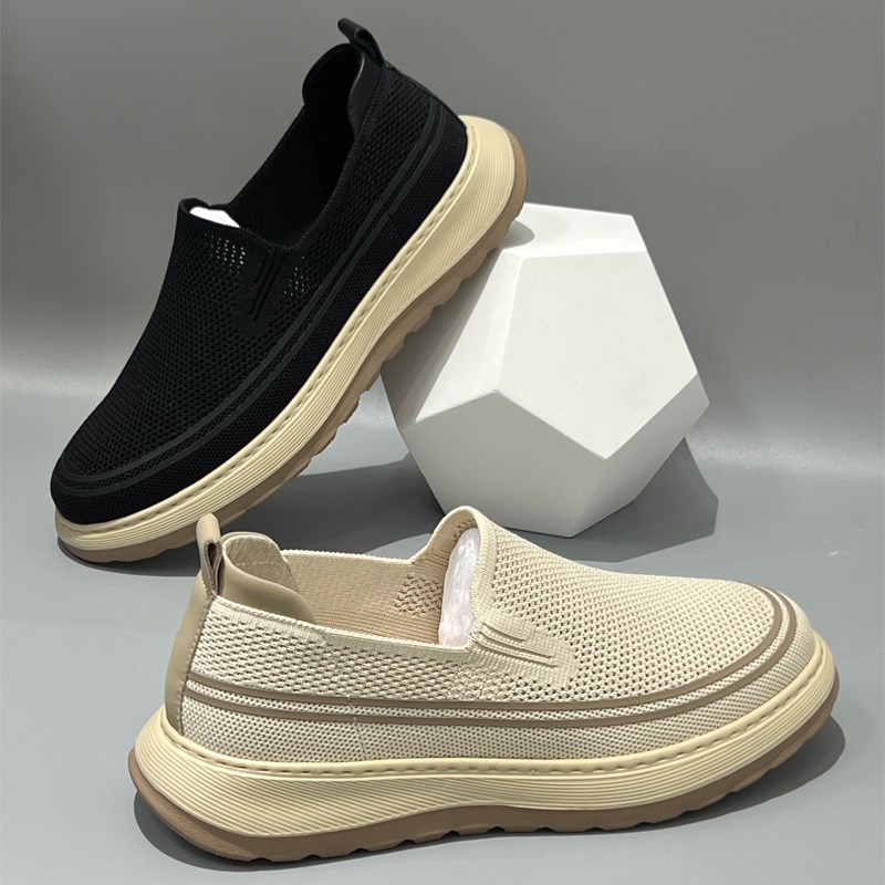 新款休闲网面透气男鞋夏季一脚蹬镂空布鞋男士软底飞织时尚懒人鞋