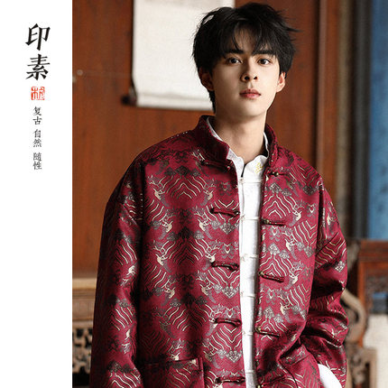 唐装秋款中国风男装织锦缎海水纹情侣上衣男中式立领外套夹克