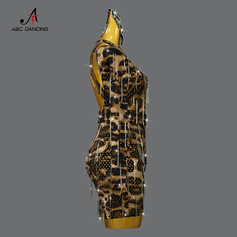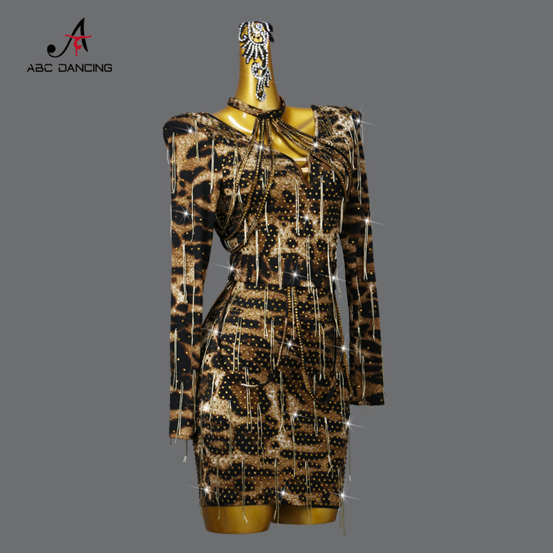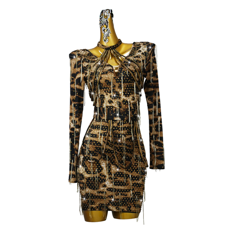 2025新款豹纹高级拉丁舞比赛服装专业黑池舞蹈花服艺考连衣裙定制