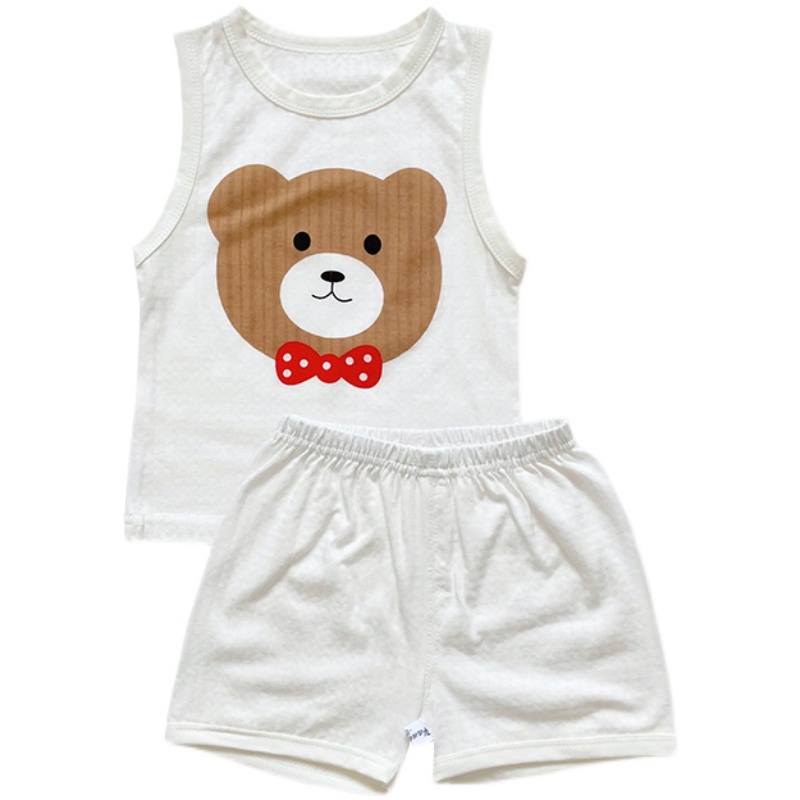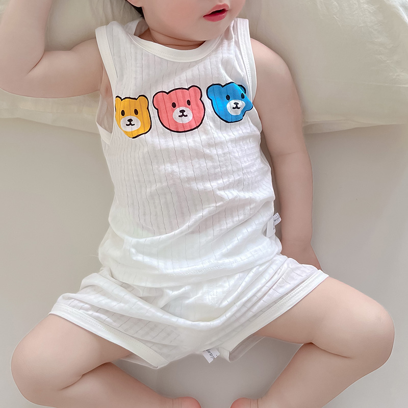 夏季宝宝纯棉背心套装男童女童卡通无袖家居服儿童呼吸透气睡衣薄