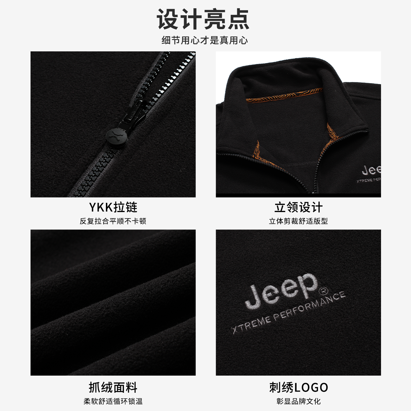 Jeep吉普户外抓绒衣外套男加厚保暖摇粒绒夹克秋冬防风冲锋衣内胆