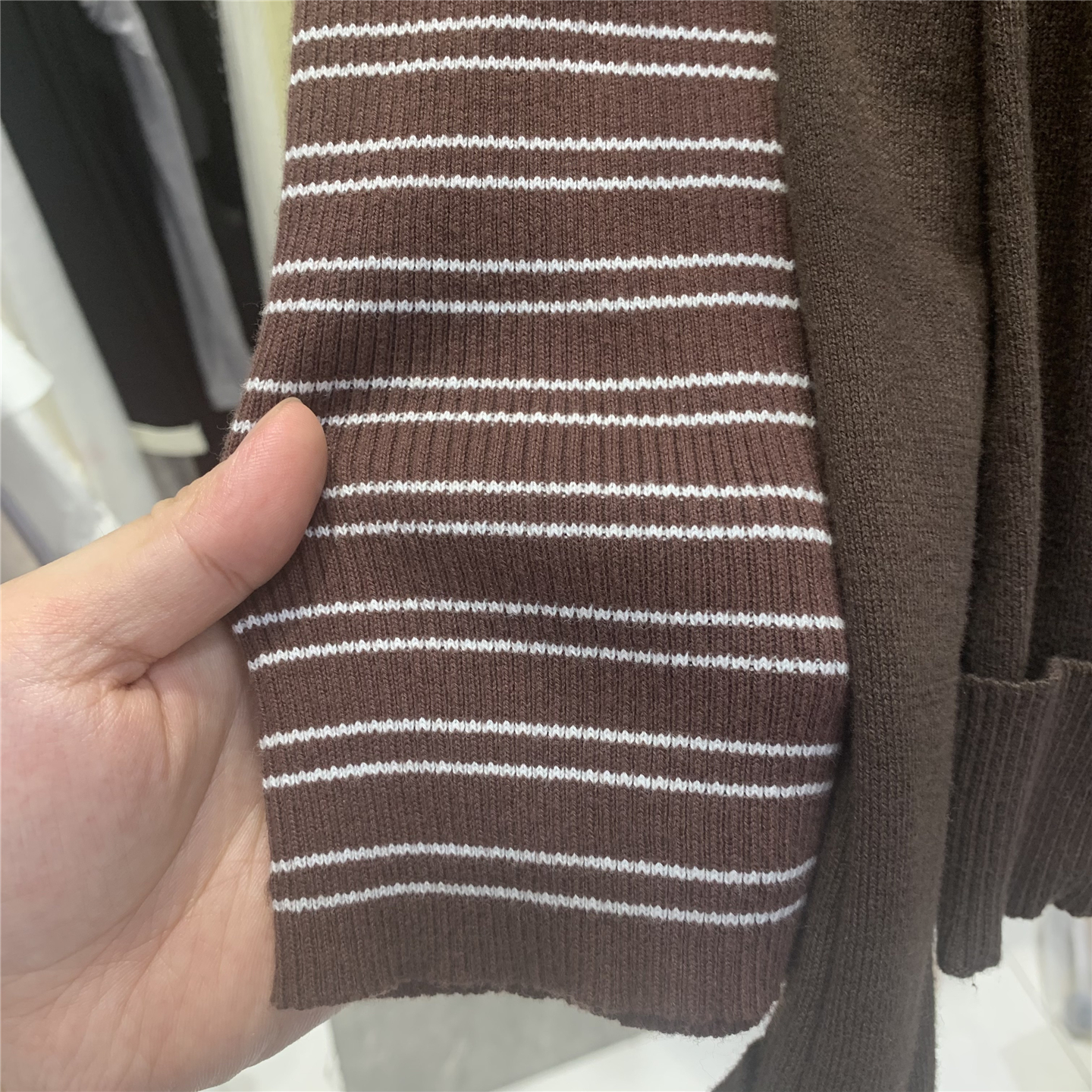 2025秋季新款韩版圆领套头修身显瘦条纹针织衫女百搭披肩两件套