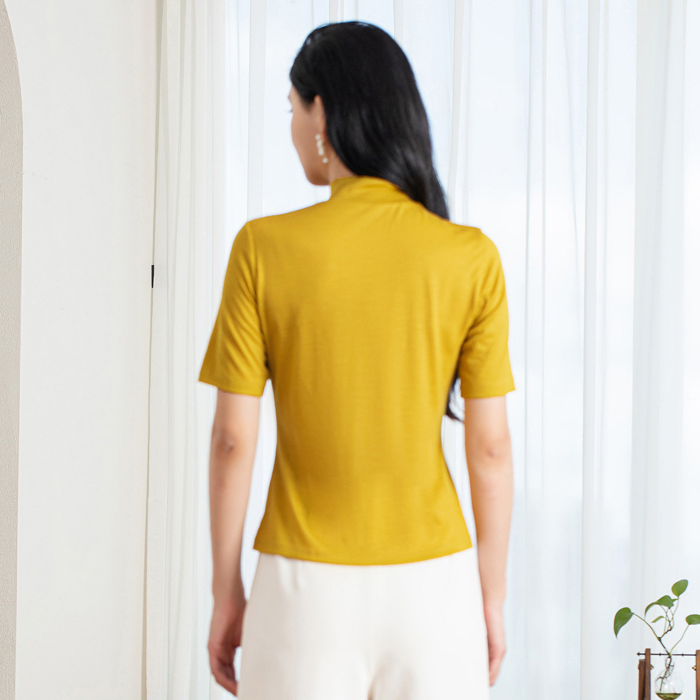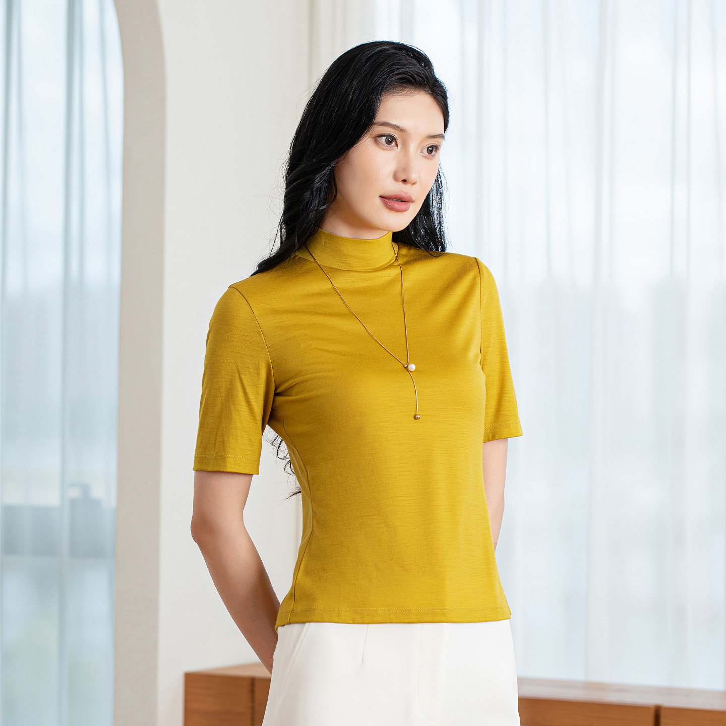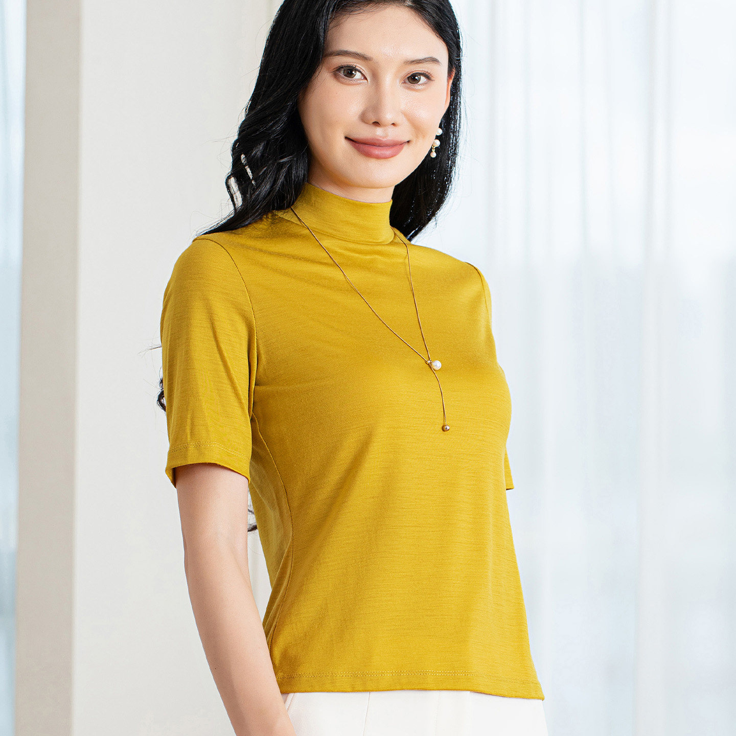 名师路半高圆领五分袖针织套头衫女秋季2025新款打底衫修身绵羊毛