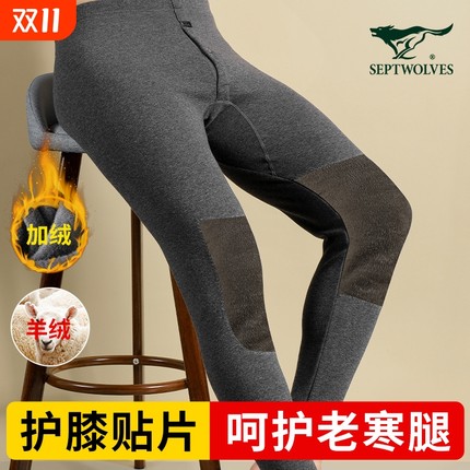 七匹狼男士保暖裤男冬季加绒加厚棉裤含羊毛打底绒裤男款护膝秋裤