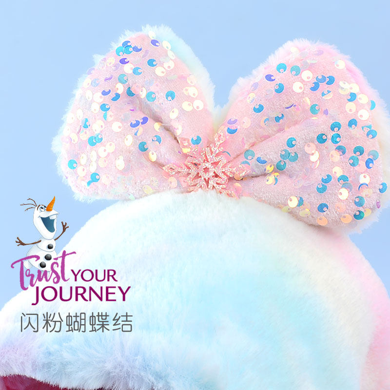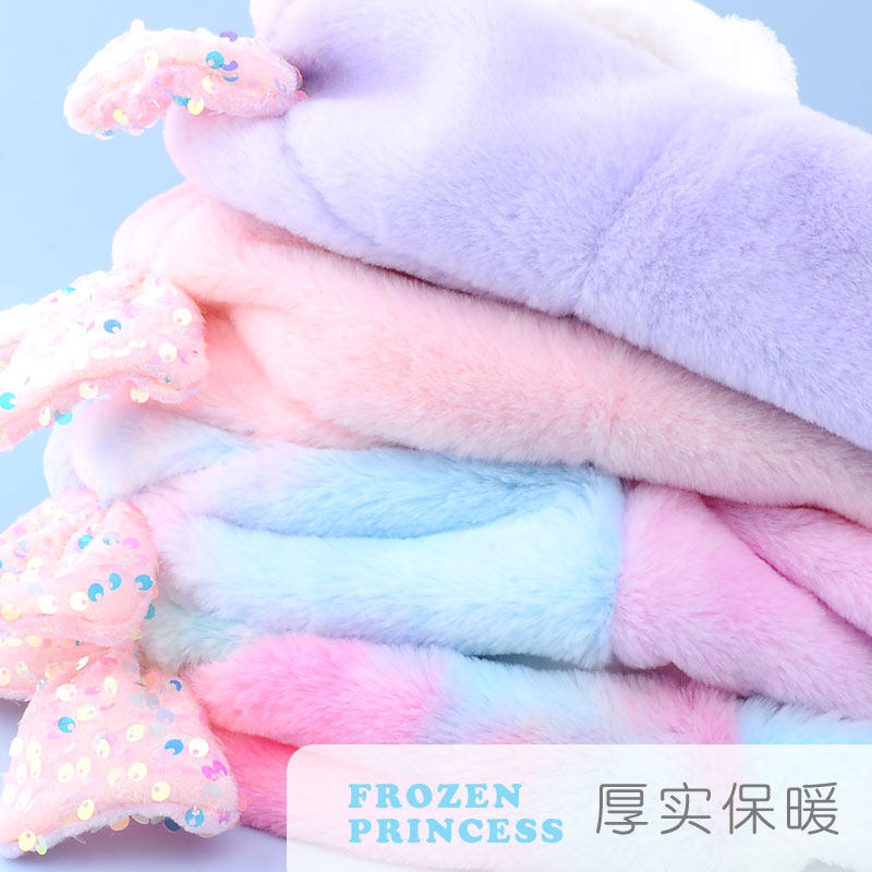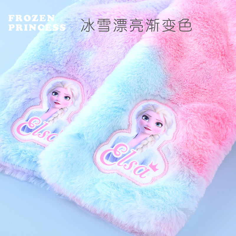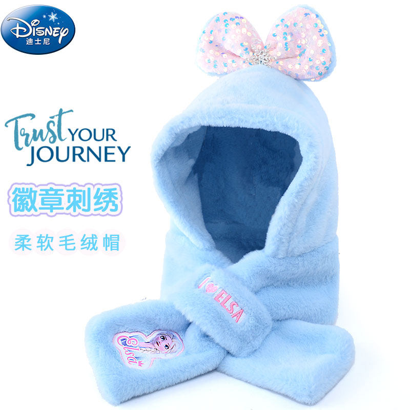 迪士尼儿童帽子女孩冬季加绒保暖围巾一体爱莎公主渐变女童套头帽