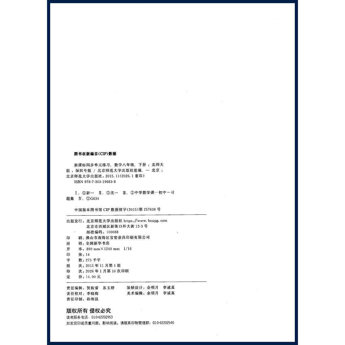 2026春新课标同步单元练习数学8八年级下册北师大版深圳专版初中数学同步初二下学期数学课本教育教科书 北师大版