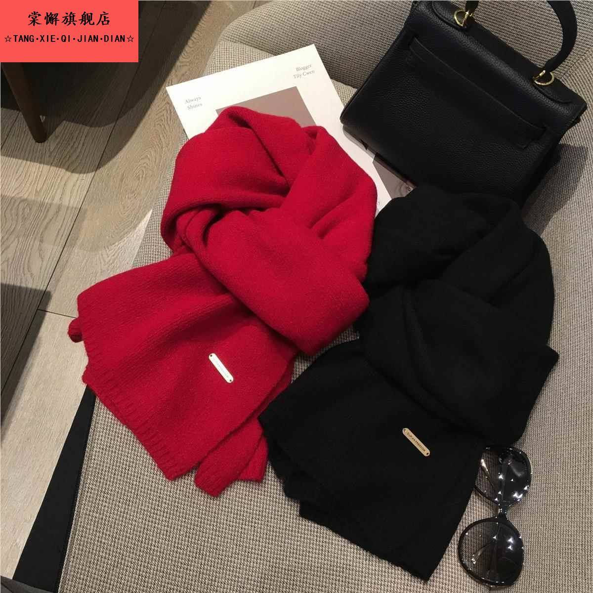 韩国百搭纯色羊毛混纺围巾女保暖披肩两用情侣款百搭纯色围脖春秋