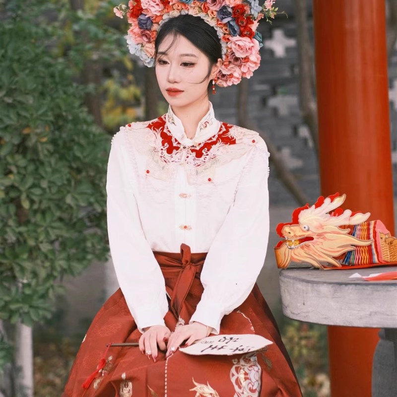 簪花服装浔埔女服装马面半身裙冬季曹县汉服云肩明制女敬酒订婚服