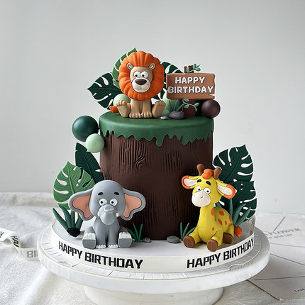 森系蛋糕装饰非洲小动物软胶玩偶卡通狮子大象长颈鹿儿童生日摆件