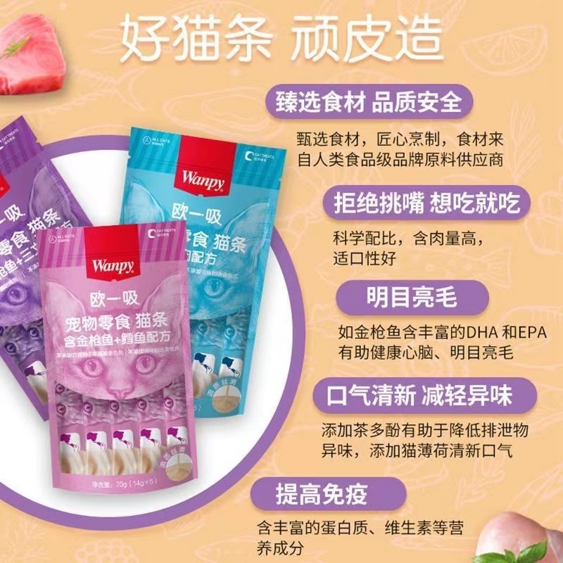 wanpy顽皮欧一吸猫条100支整箱猫咪零食湿粮成幼猫咪增肥营养补水