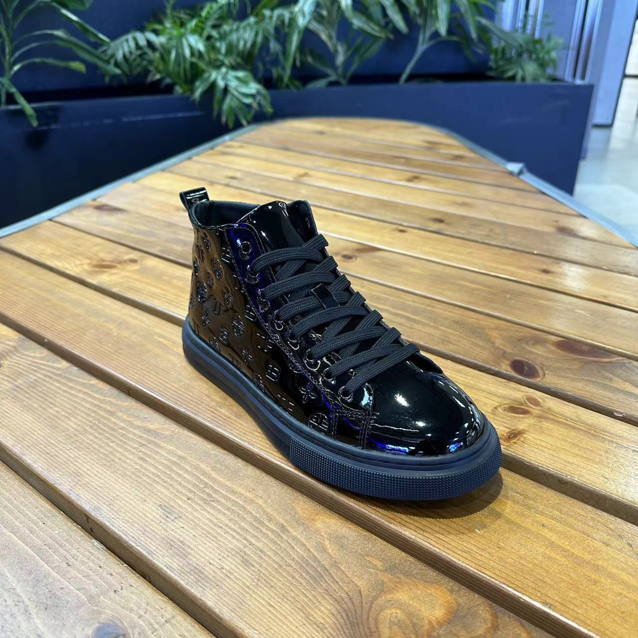欧洲站秋季男鞋时尚板鞋高帮韩版黑武士鞋男软底净版休闲