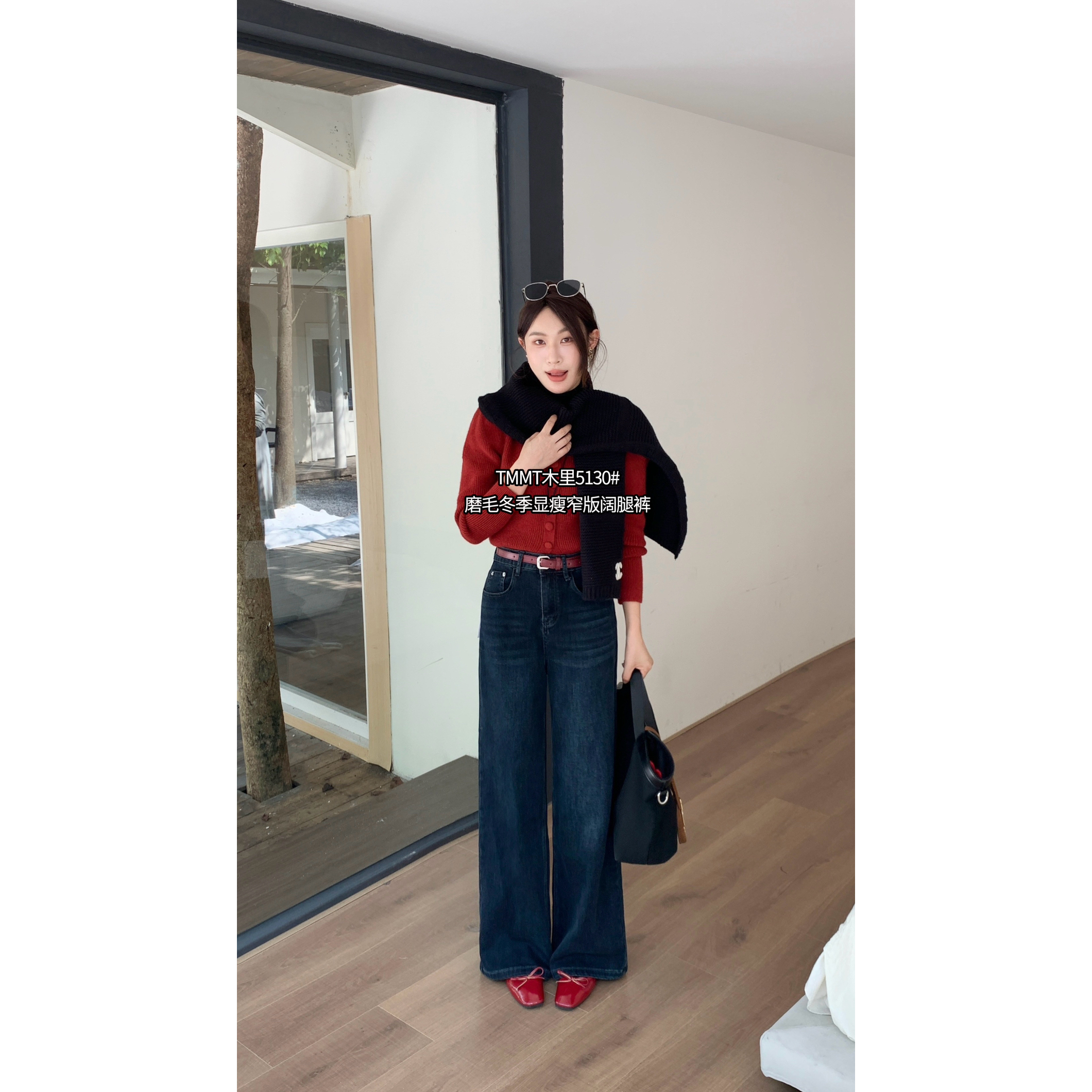 JIAJIATMMT木里十三行窄窄裤加绒阔腿裤直筒牛仔裤女(配腰带)5130