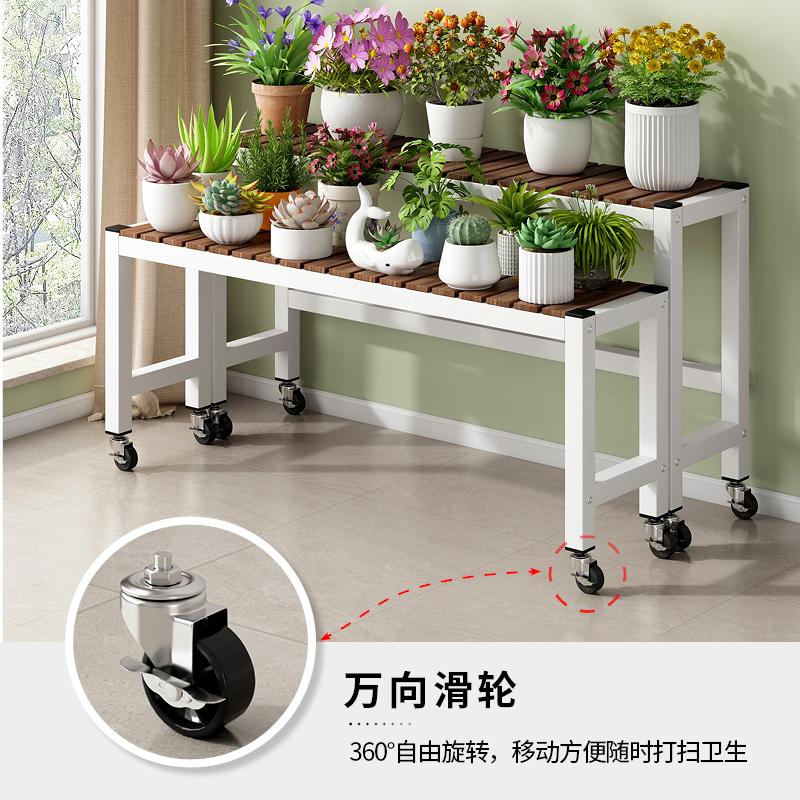 阳台花架子2025新款移动带轮客厅落地式置物架实木阶梯铁艺花盆架