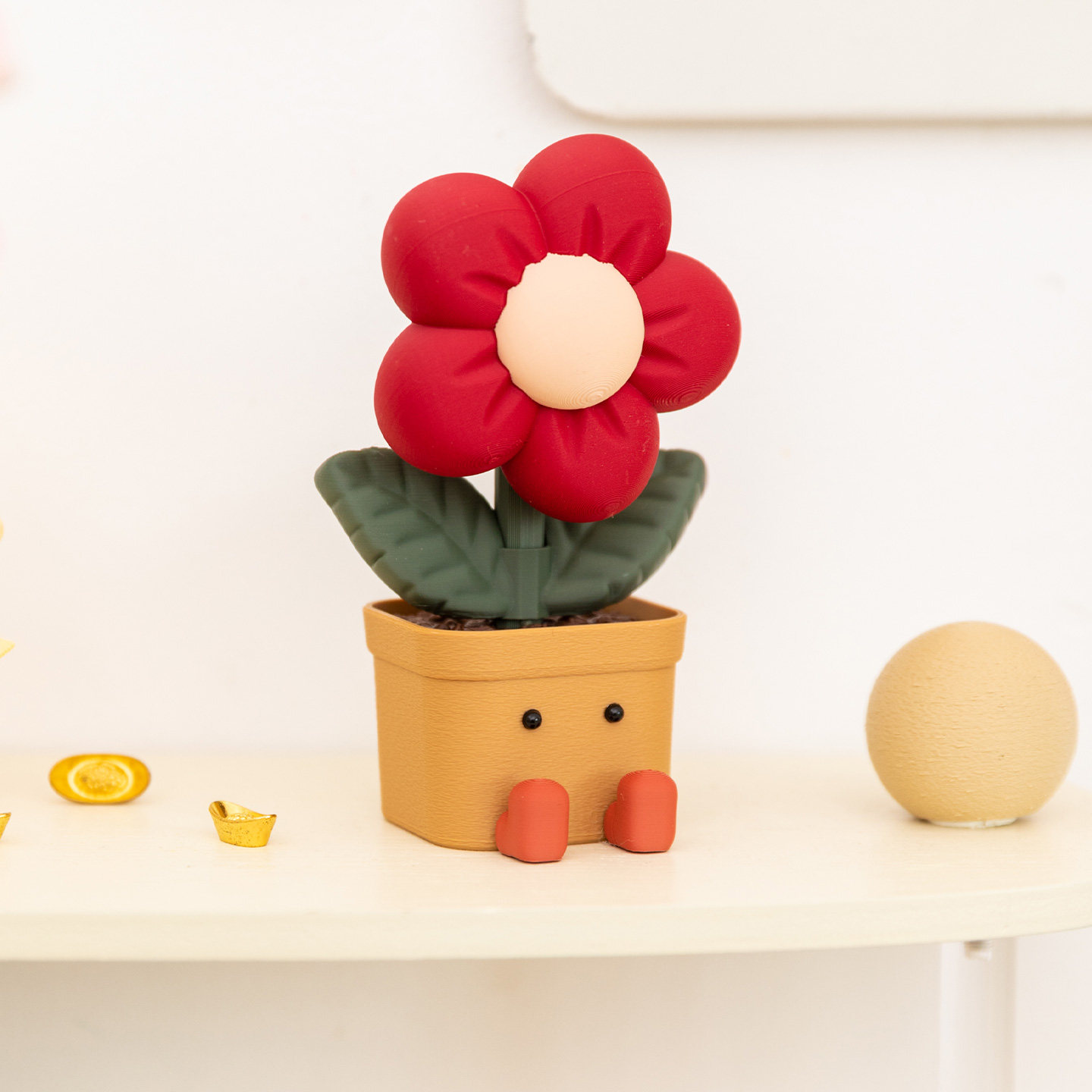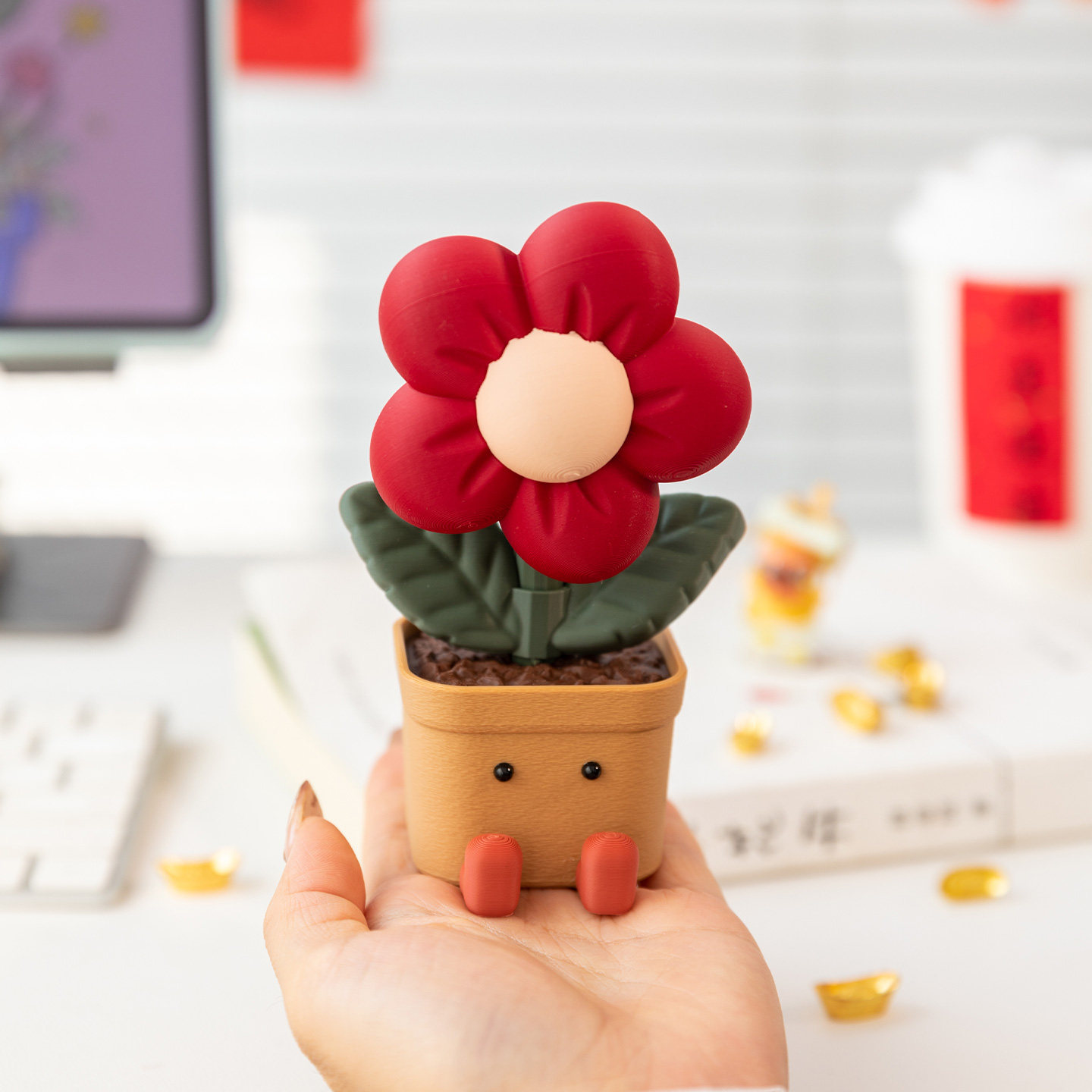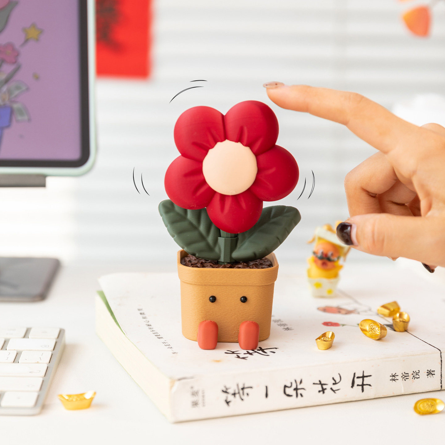 趣味招财旋转小红花摆件解压玩具