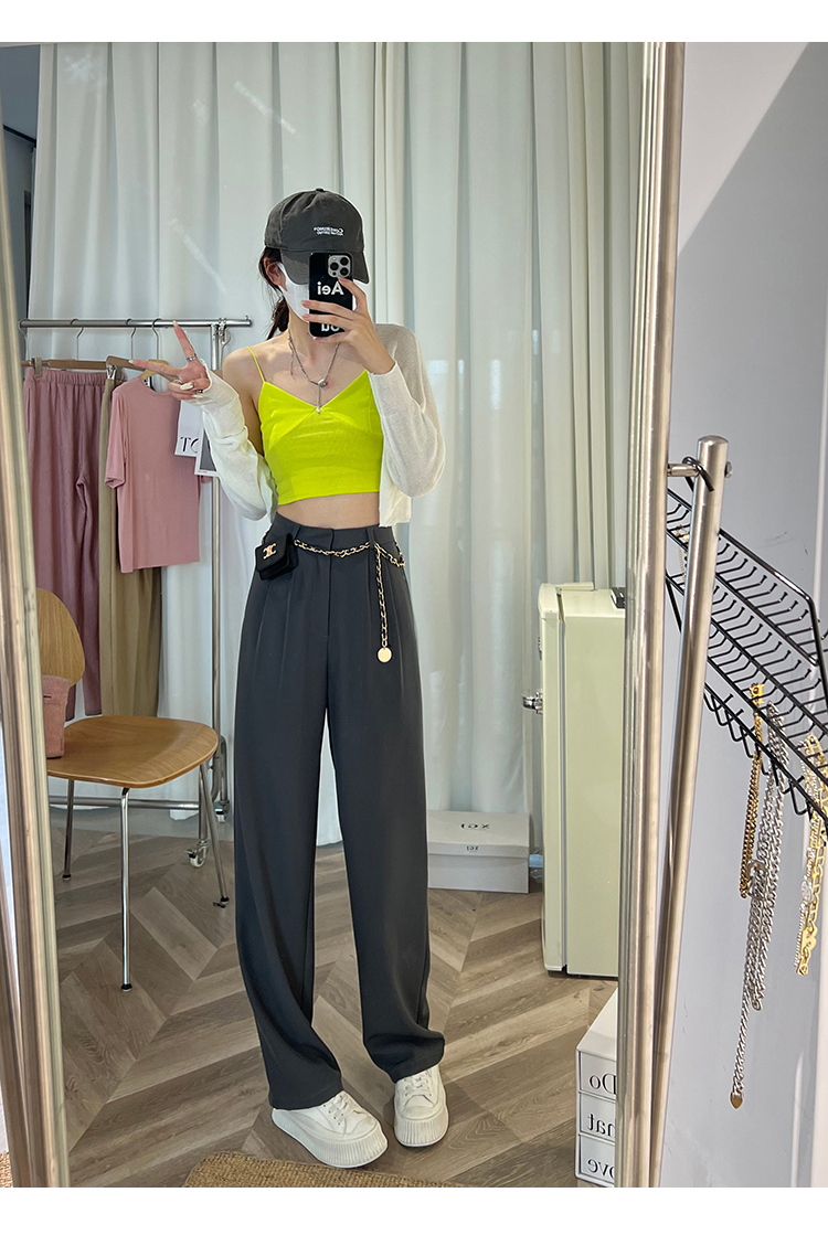 灰色垂感西装阔腿裤女春秋小个子高腰宽松拖地直筒休闲裤夏季薄款