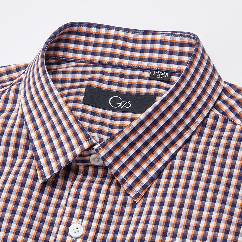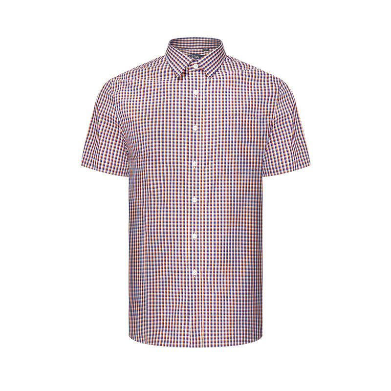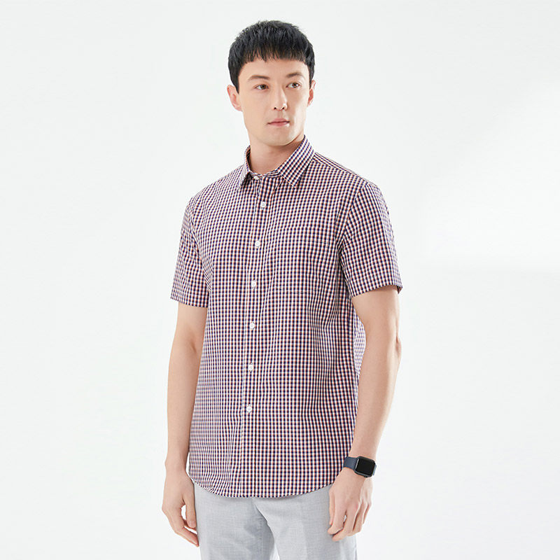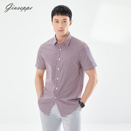 乔治白夏季男士纯棉短袖衬衫度假休闲撞色格子衬衣有口袋半袖上衣