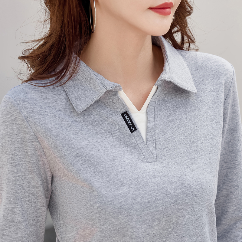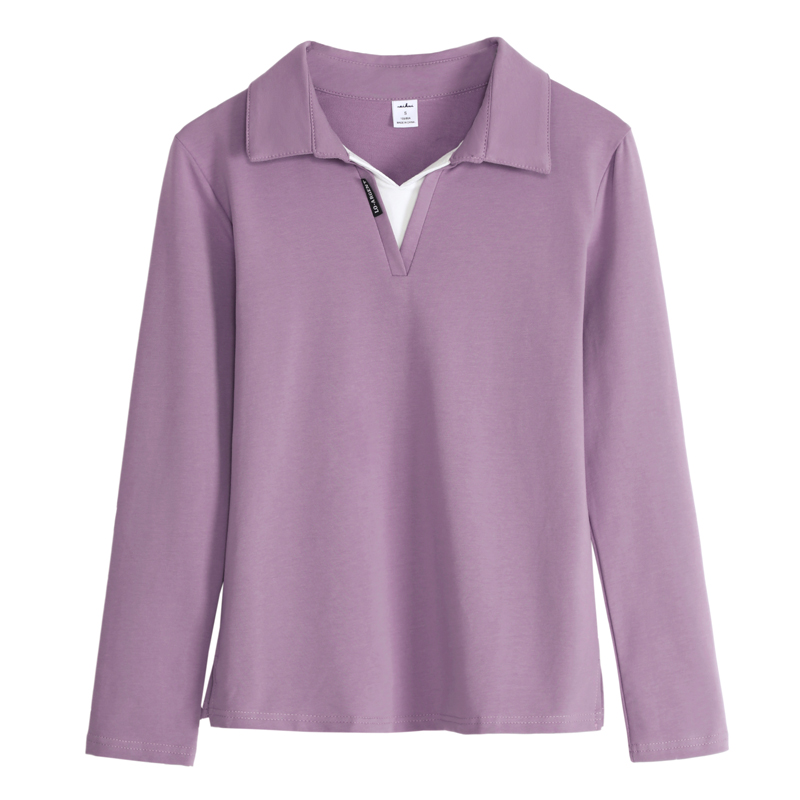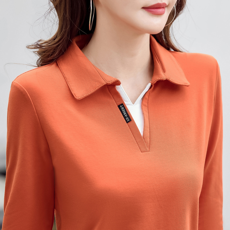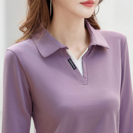 polo领纯棉长袖t恤女大码宽松老人衬衣中老年妈妈洋气春秋上衣
