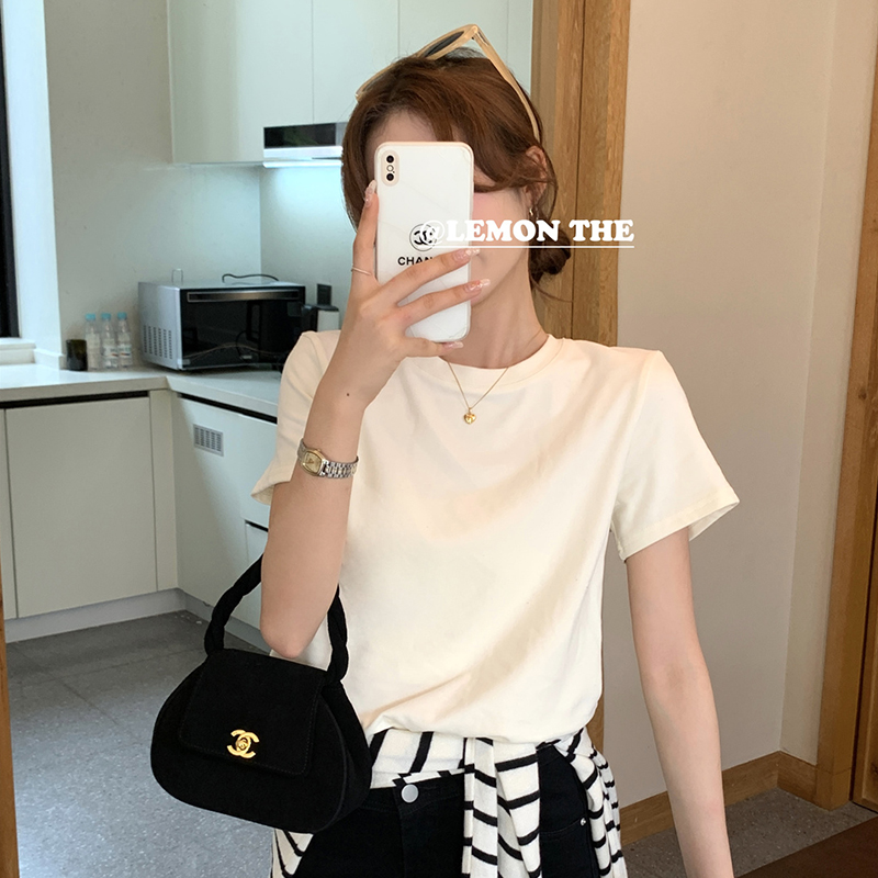 白色短袖t恤女士2025夏季新款纯色半袖正肩独特漂亮超好看上衣棉