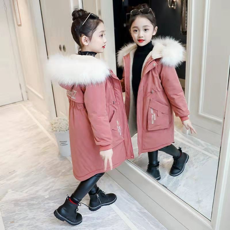 女童棉衣2025新款儿童洋气冬装加绒派克服时尚外套棉袄中长款棉服