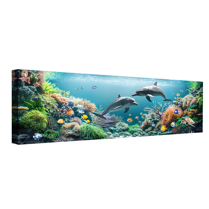 海洋世界风景长形装饰画酒店卧室床头背景画海豚挂画壁画无框画