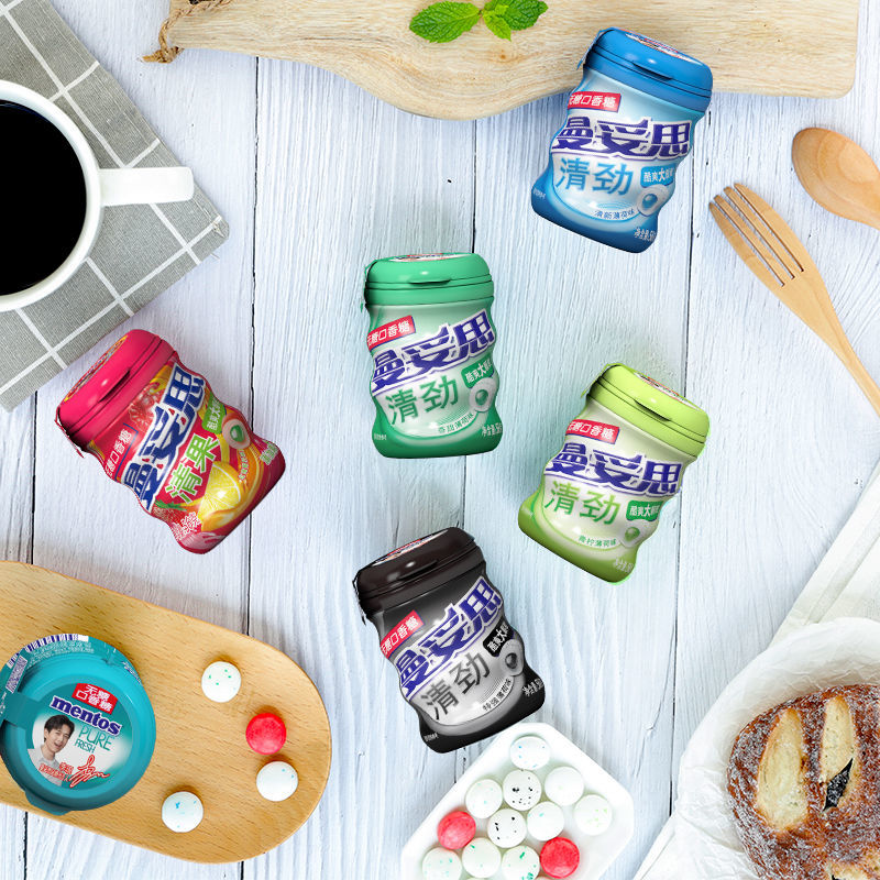曼妥思清劲夹心无糖口香糖56g罐装木糖醇薄荷糖约会接吻充气糖果