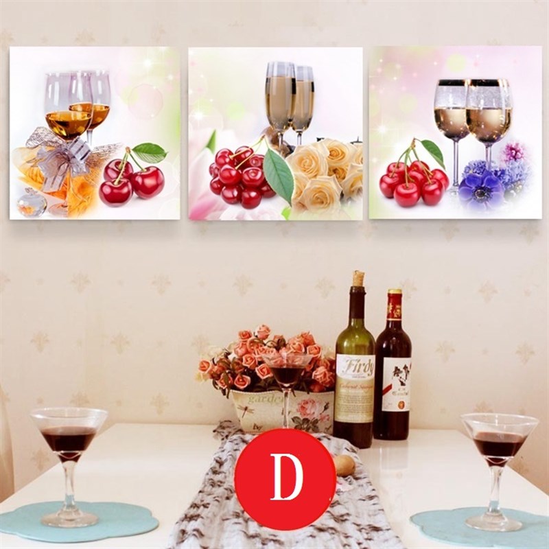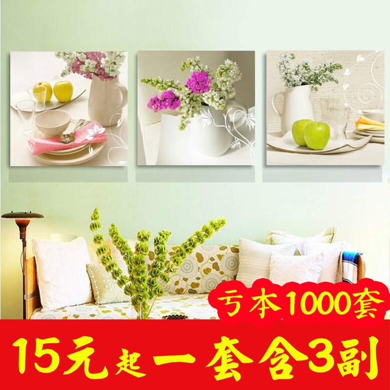 速发餐厅装饰画三联水果无框画客厅沙发背景墙画厨房墙上挂画壁画
