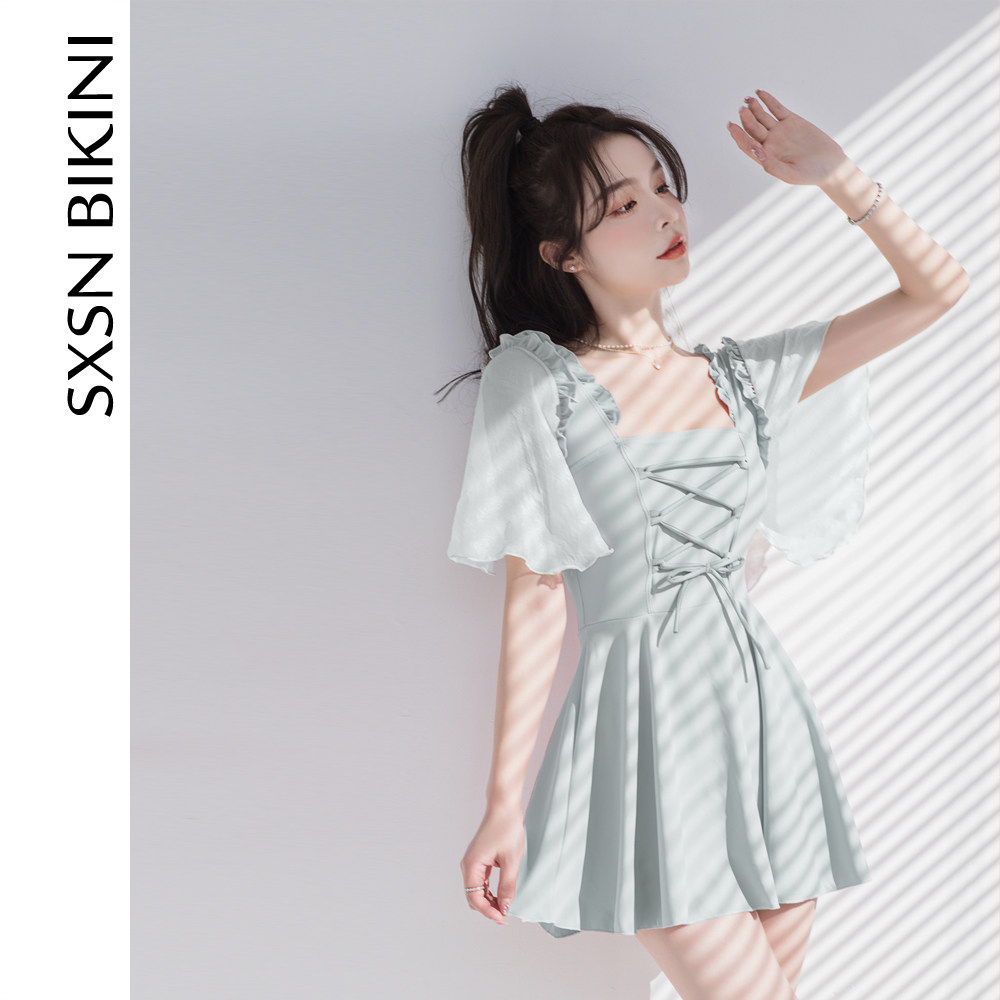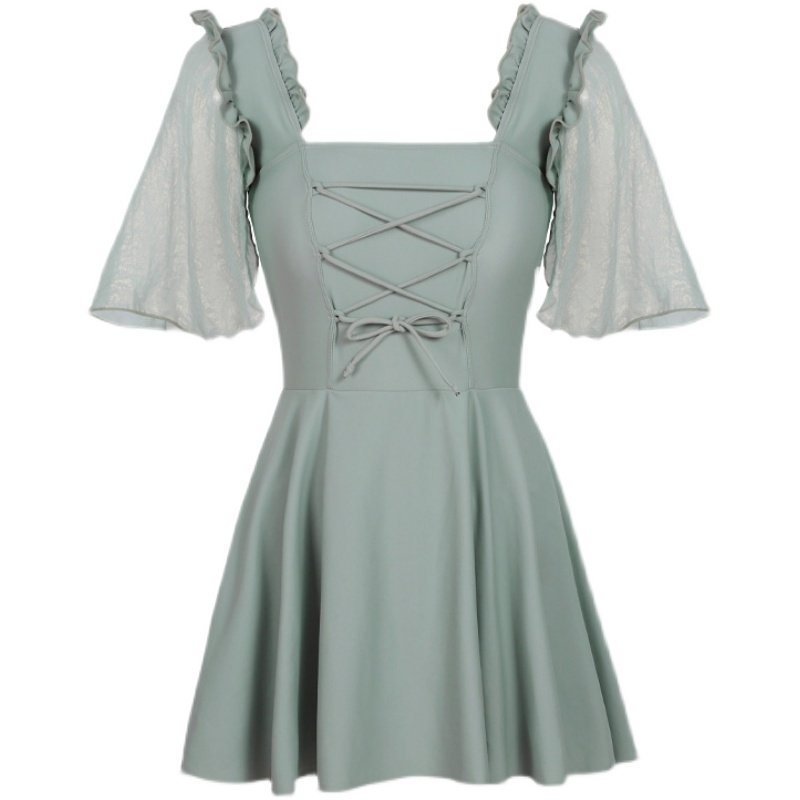 树熊少女 新款显瘦方领连体裙式温泉学生保守大童度假游泳衣平角