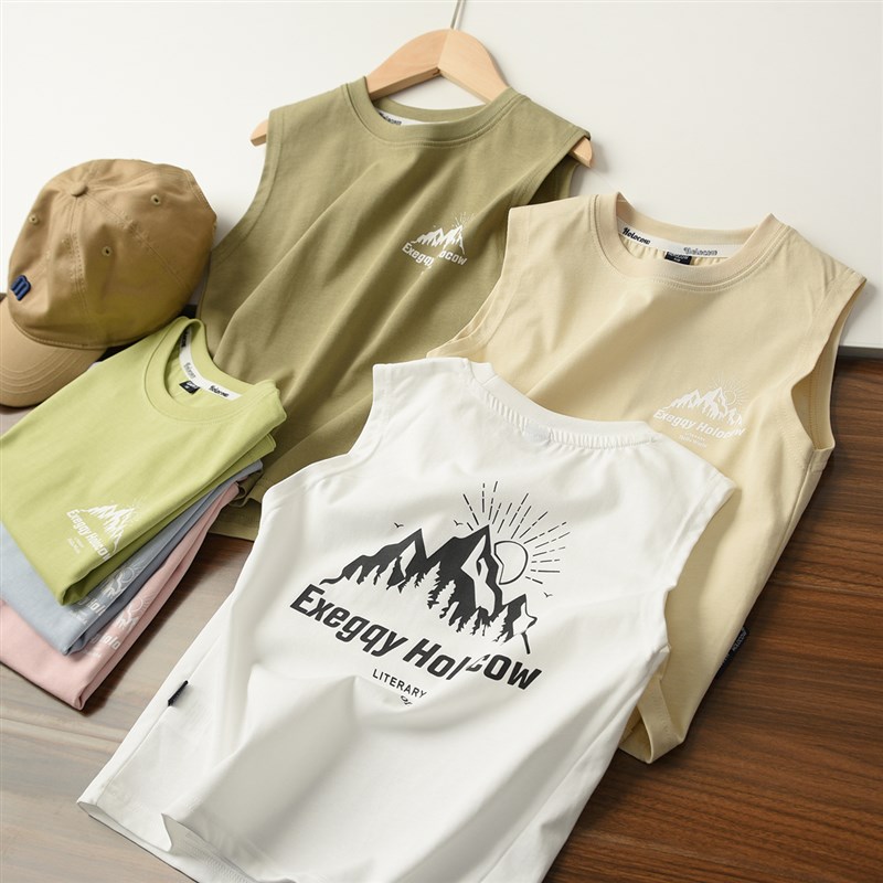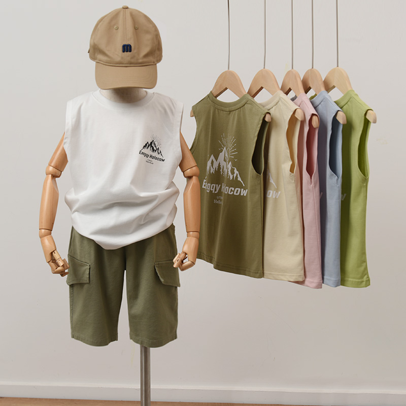 速发酷帅小T 儿童背心 男童童圆领宽肩字母无袖上衣中大童夏装