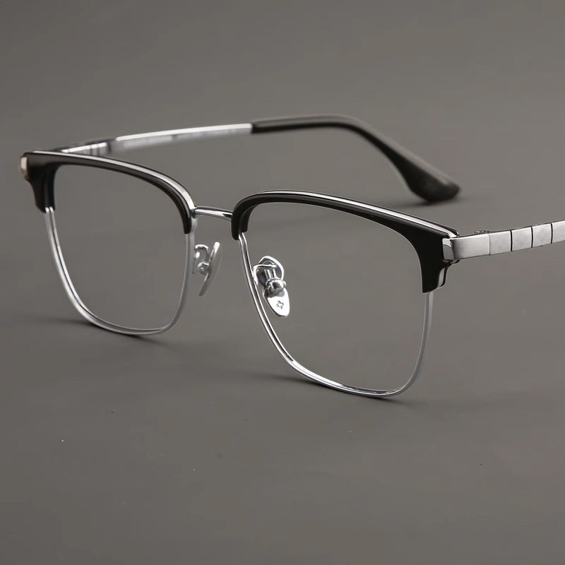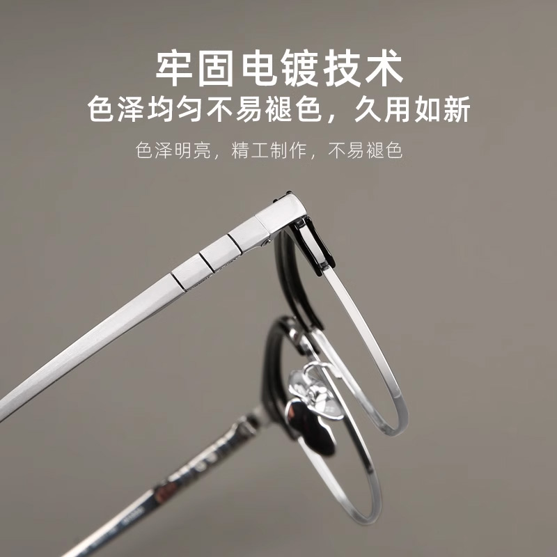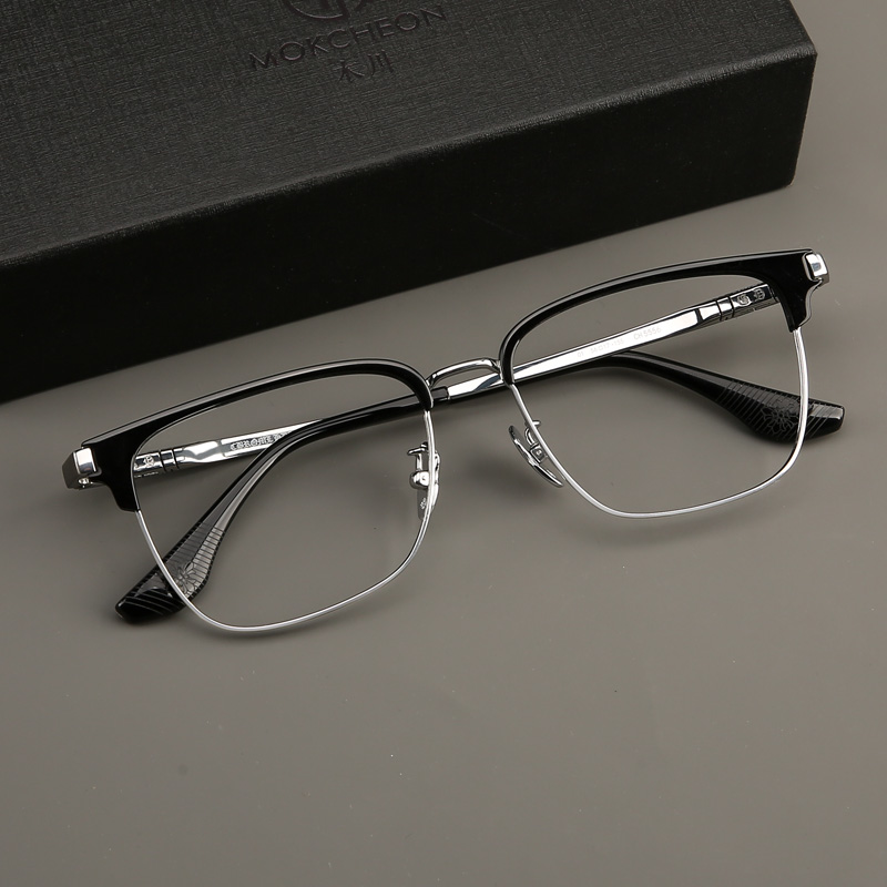 木川150MM纯钛眼镜框男士大脸轻奢眉线半框镜架可配度数近视散光
