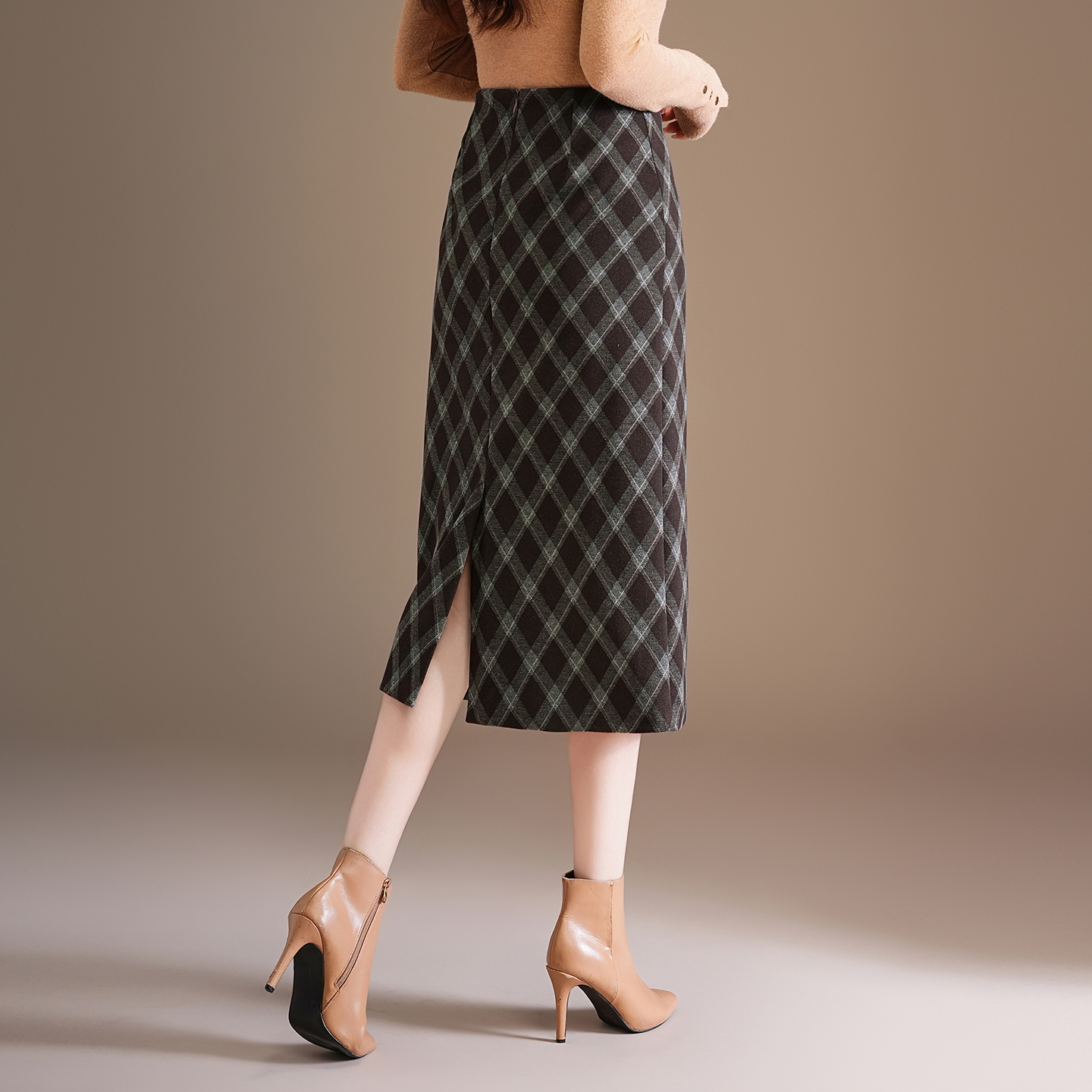 毛呢直筒格子裙半身裙女秋冬2025新款高腰显瘦中长款包臀一步裙子
