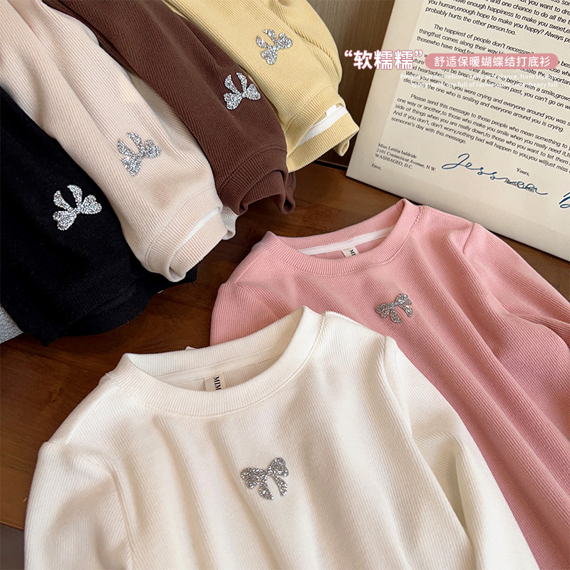 女童打底衫春秋2025新款洋气儿童长袖T恤小女孩纯色百搭内搭上衣