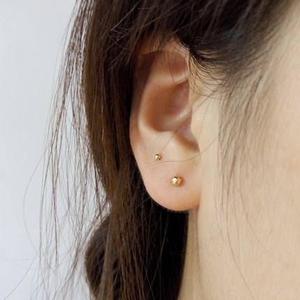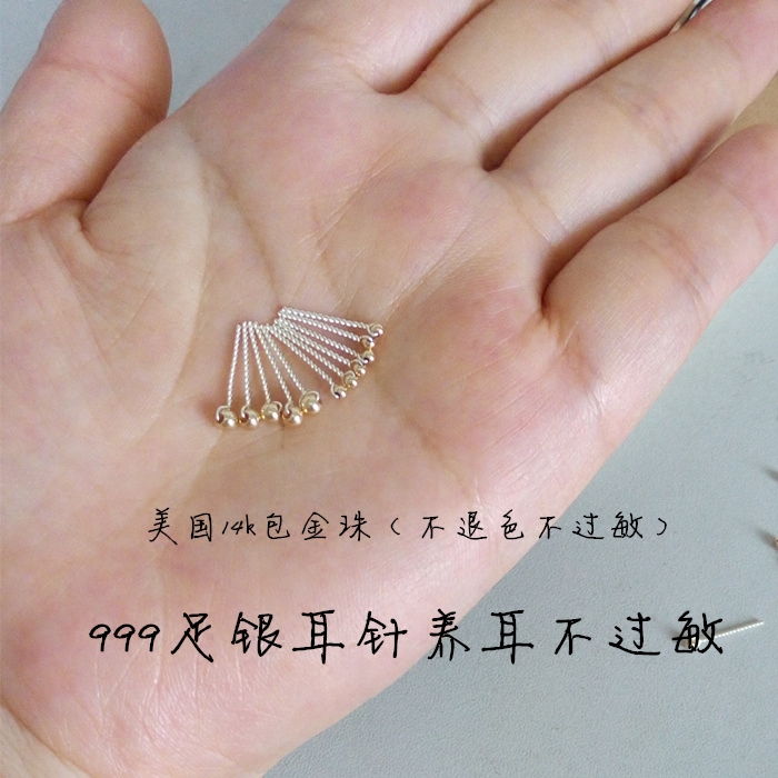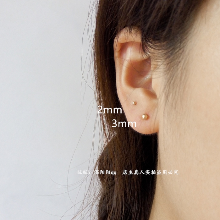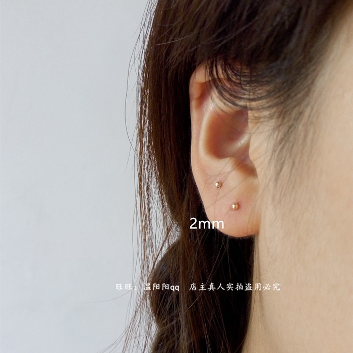 手工2mm超级小金珠耳钉足银999纯银耳针迷你小耳骨钉养耳不过敏