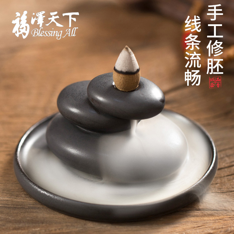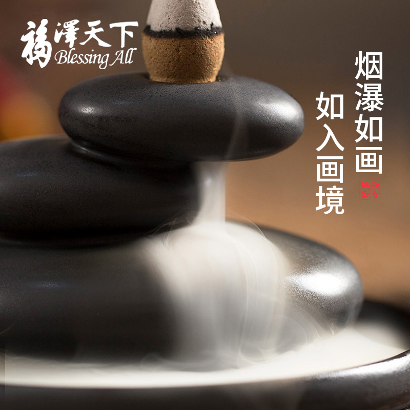 福泽天下禅意石 倒流香炉家用室内沉香檀香炉办公室新款创意摆件