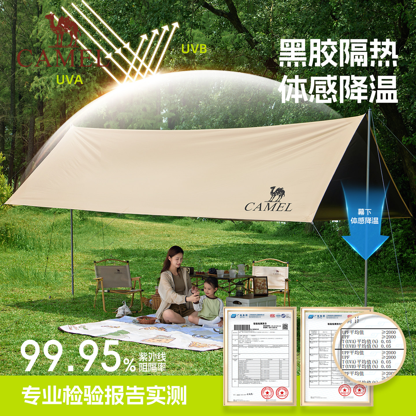 骆驼户外露营天幕帐篷专业防风防晒黑胶涂层防雨野餐大遮阳棚便携
