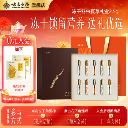 【会员加享】云南白药旗舰店冬虫夏草正品冻干虫草送礼盒长辈领导