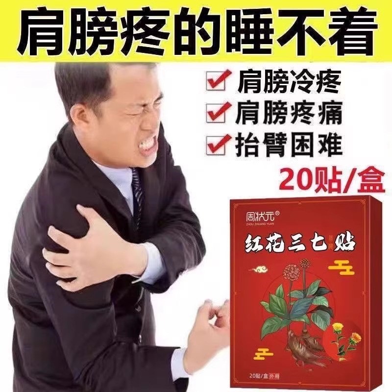 肩周贴有积液肩膀酸痛肩周损伤肌腱不适抬臂困难红花三七贴热敷贴