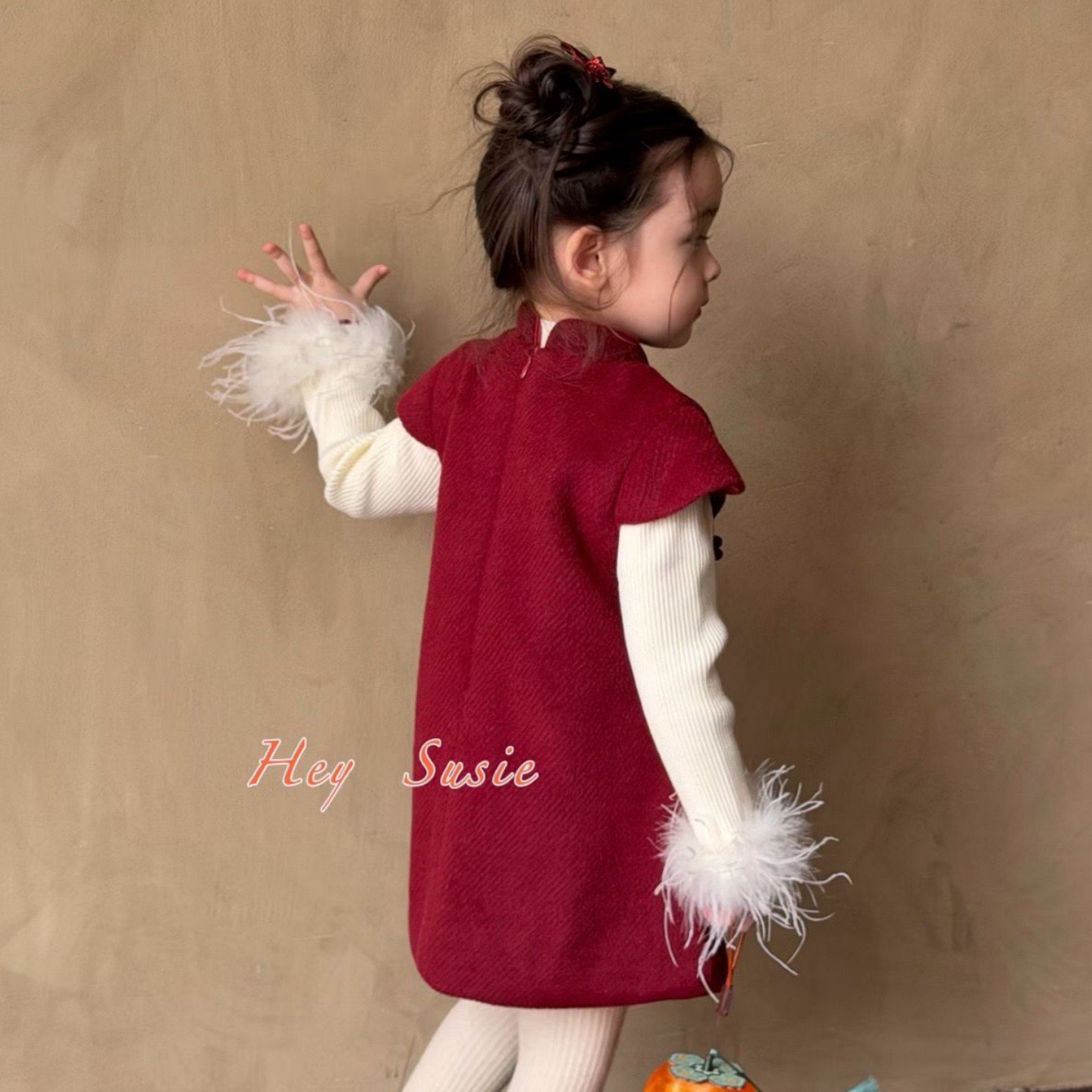 女童2025新款亮片绣花旗袍裙新中式圣诞背心裙两件套女宝宝拜年服