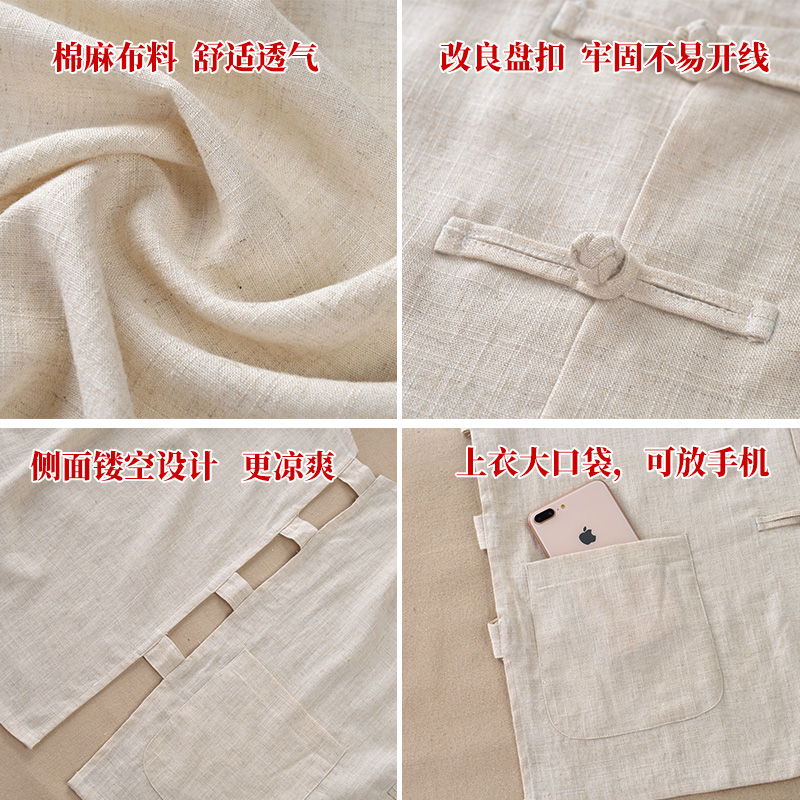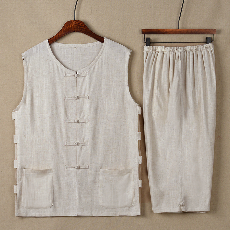 中国风亚麻套装男唐装马甲复古潮夏季中老年人宽松棉麻短裤爸爸装