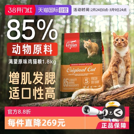 【自营】Orijen渴望猫粮成幼猫原味鸡肉1.8kg布偶英短高蛋白通用