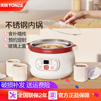 天际不锈钢隔水炖电炖盅陶瓷电炖锅全自动煮粥煲汤锅一锅三胆1.2L