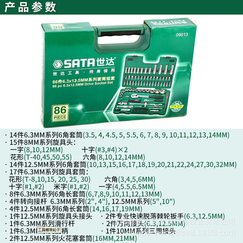 世达86件套世达09013汽修汽保组合组套棘轮套筒扳手汽车工具套装