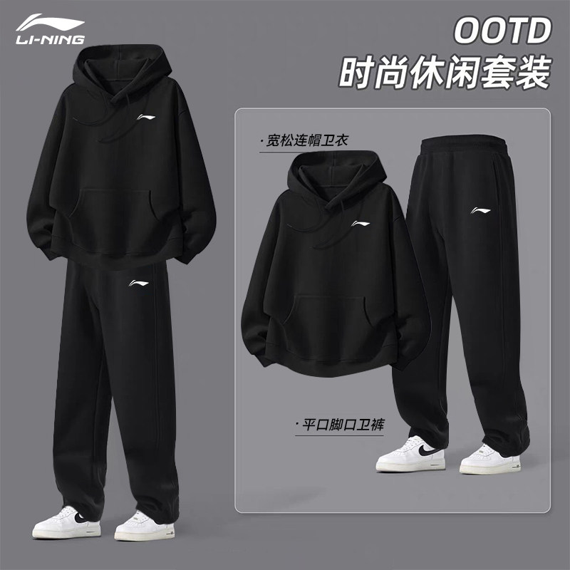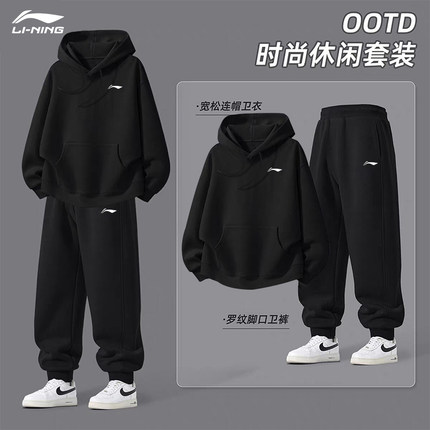 李宁运动套装男2025秋冬外套开衫连帽卫衣卫裤休闲宽松运动服套装