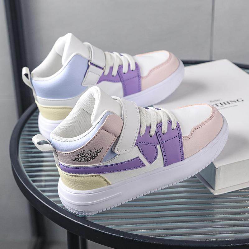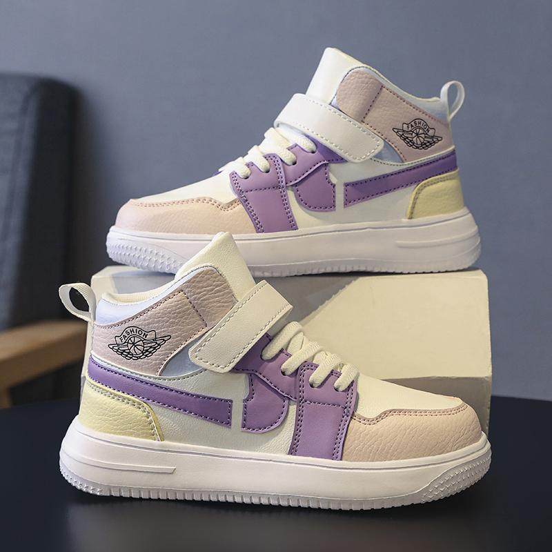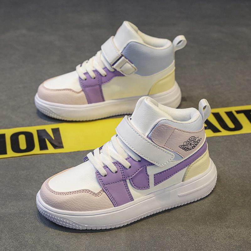 女童高帮板鞋皮面舒适轻便保暖