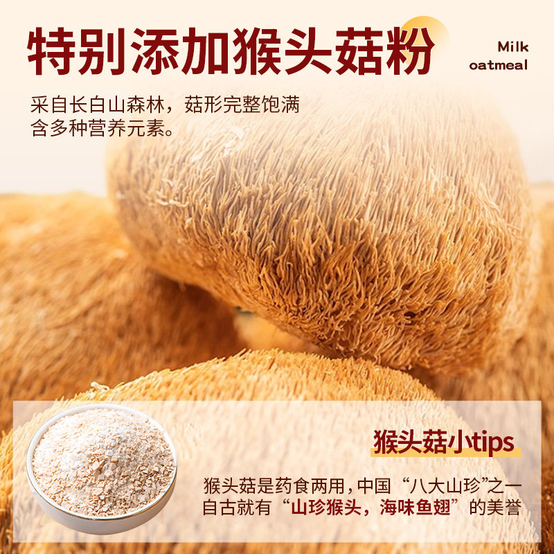 猴头菇牛奶燕麦片中老年学生早餐冲饮即食粥独立小袋代餐饱腹懒人