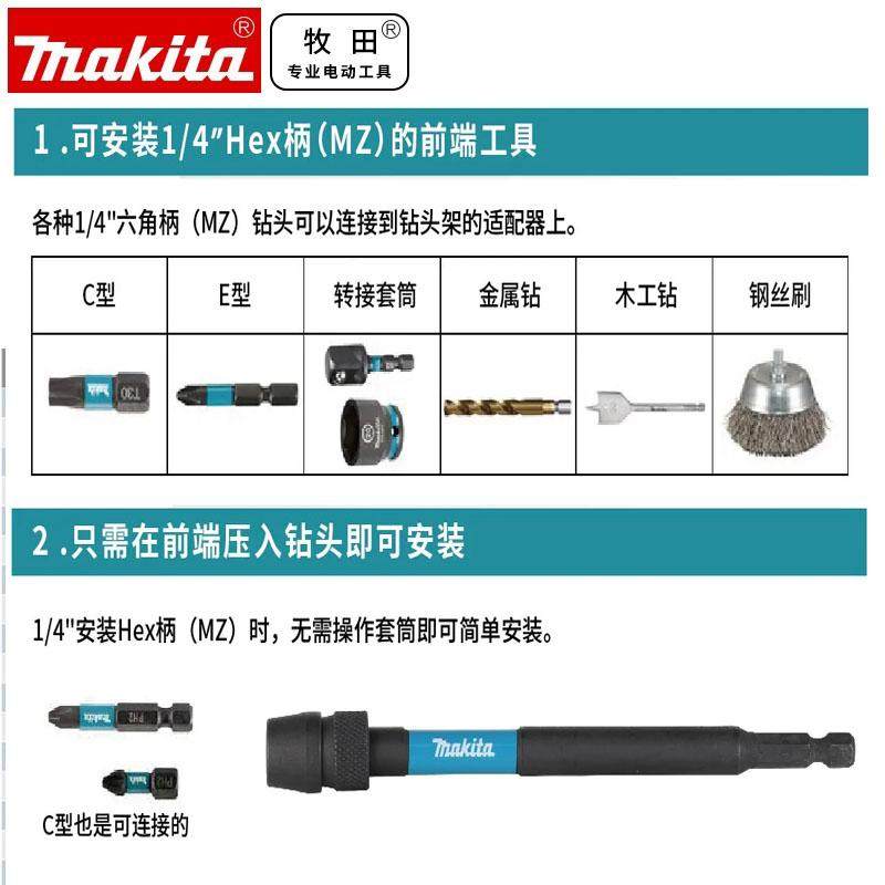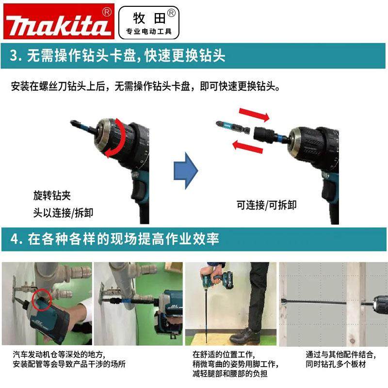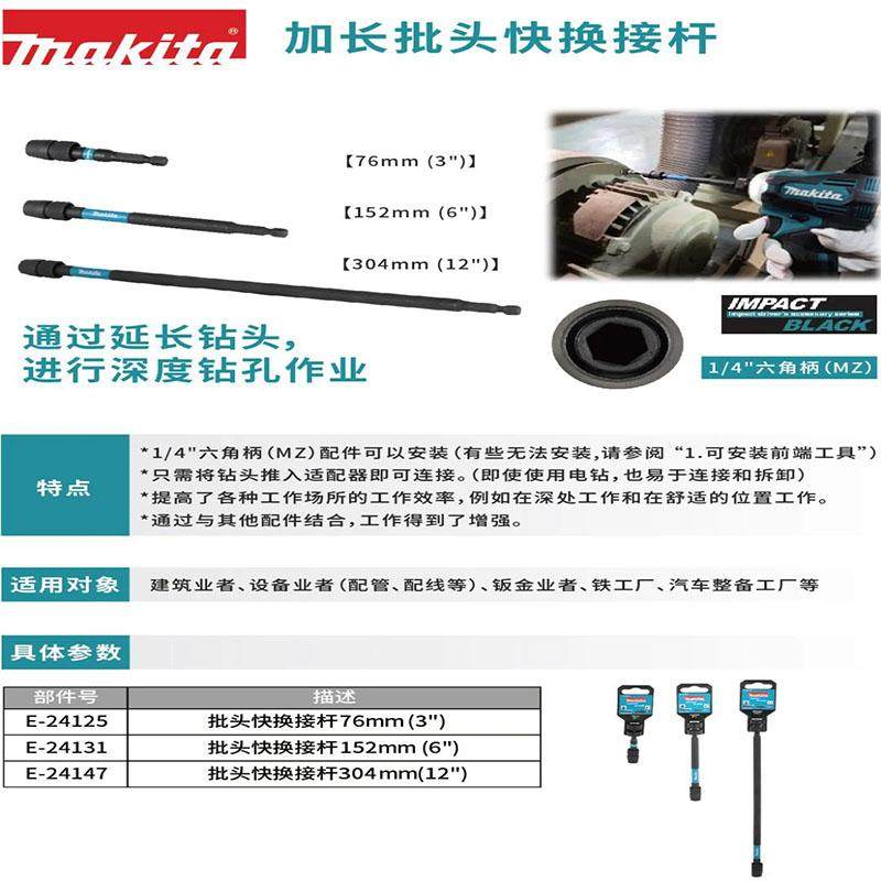 正品原装牧田六角柄快脱自锁接杆加长杆 电钻起子快 速转接杆批头