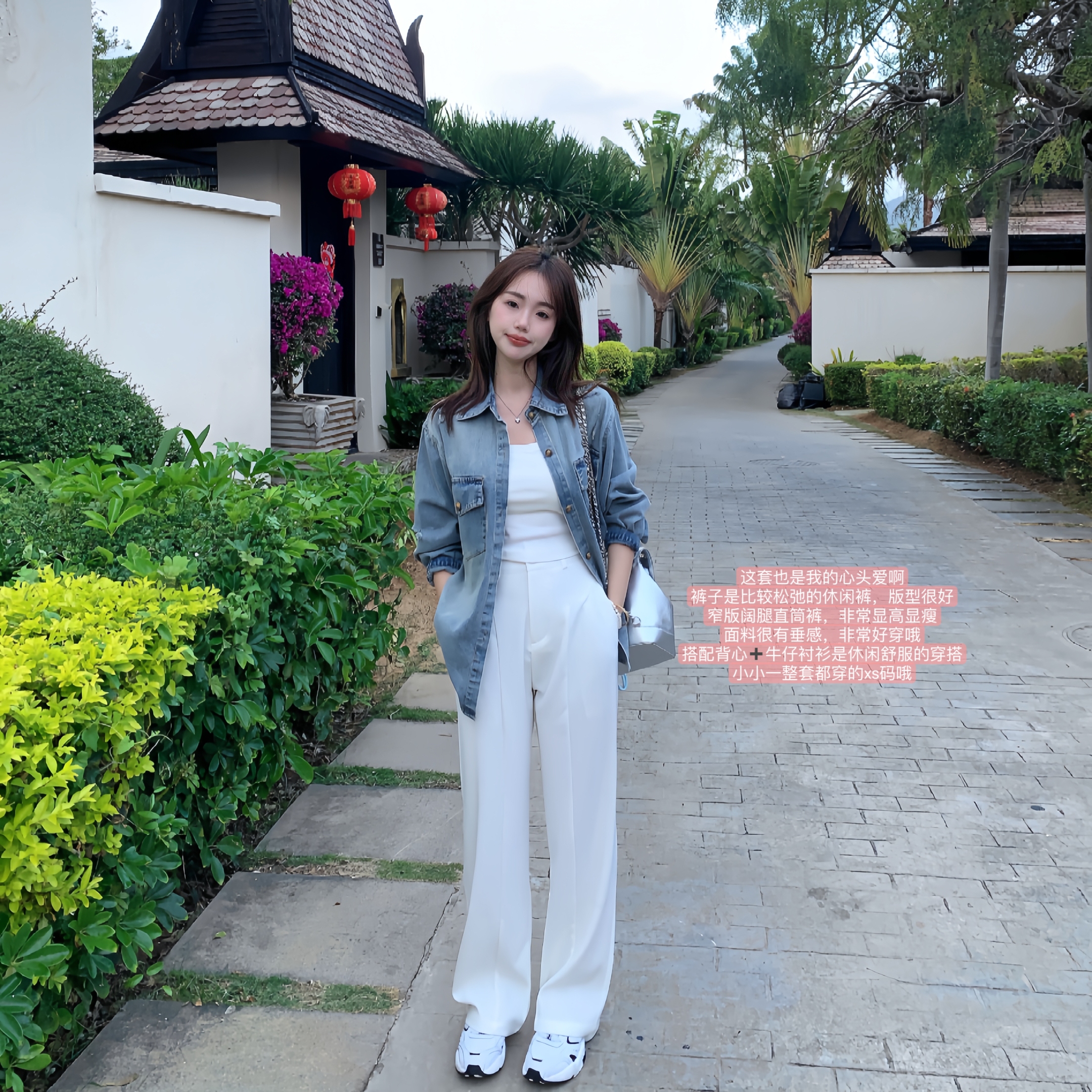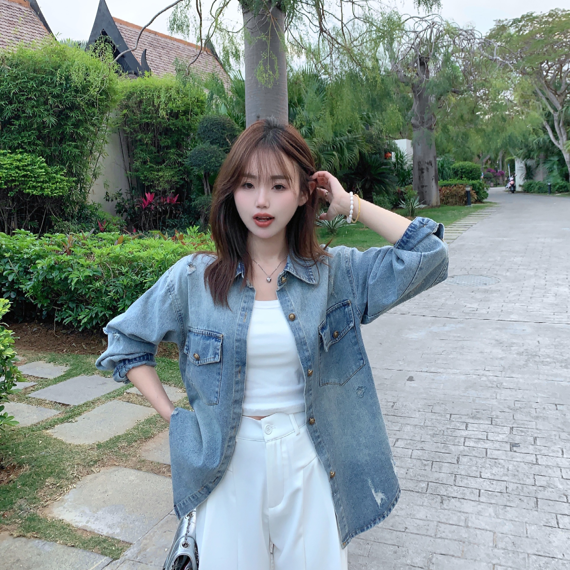 小小家 小个子小码做旧浅蓝色牛仔衬衫长袖25年春新款薄款衬衣150