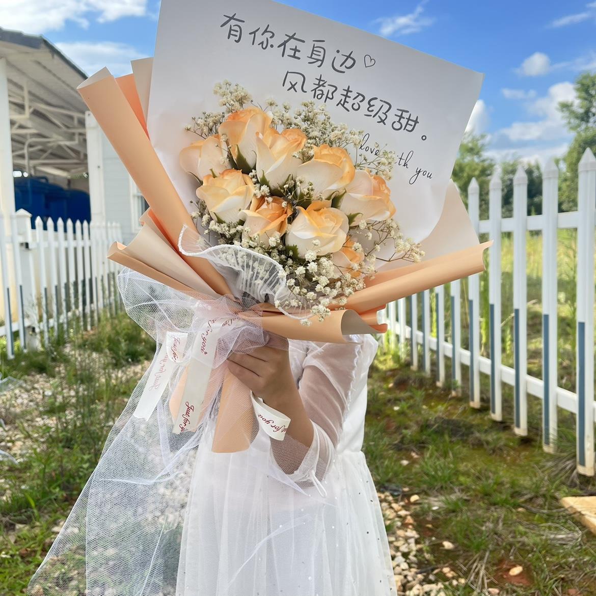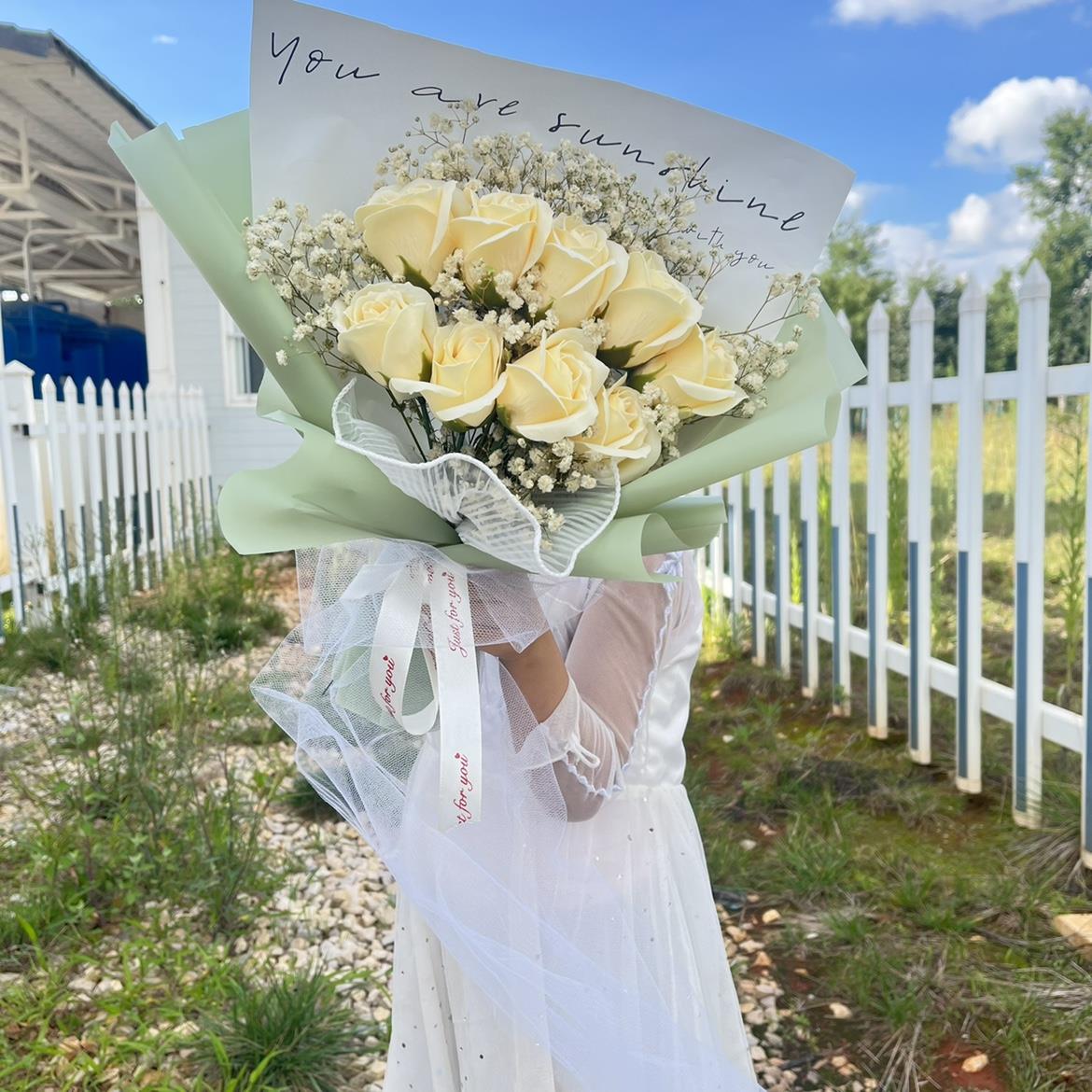 网红ins风碎冰蓝花束玫瑰干花满天星创意混搭香皂花仿真永生花束