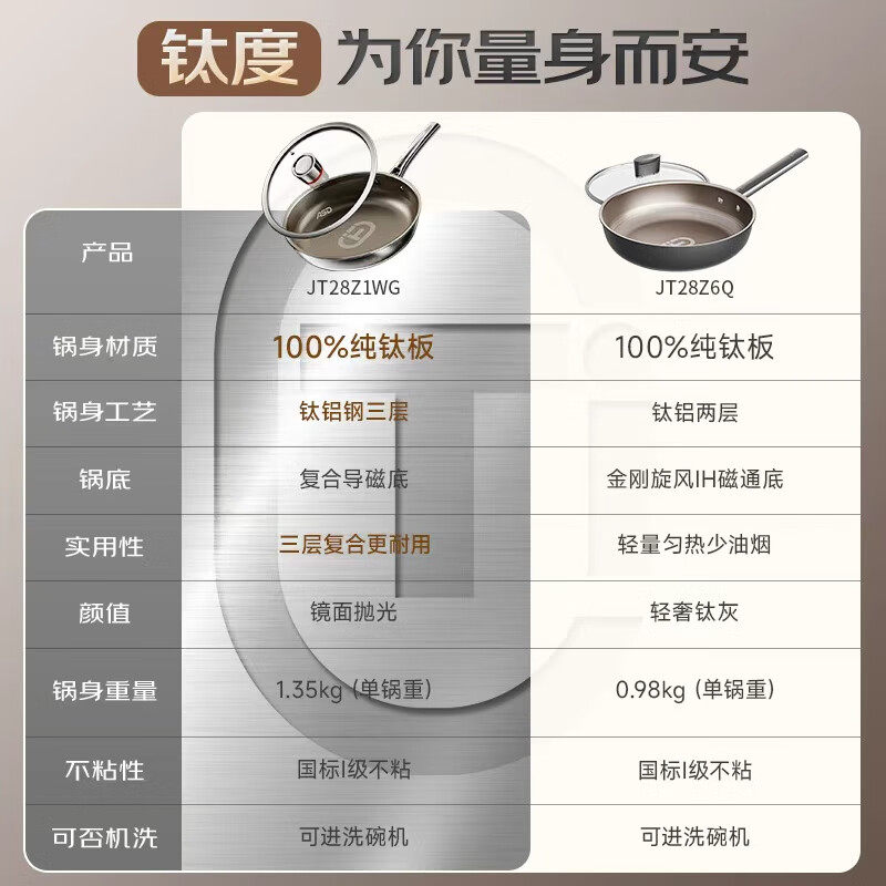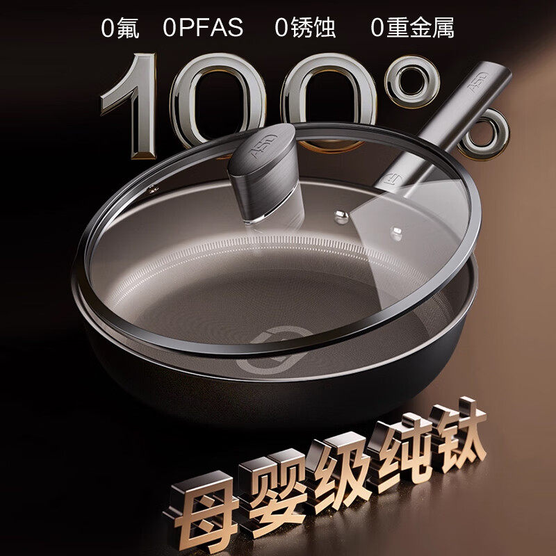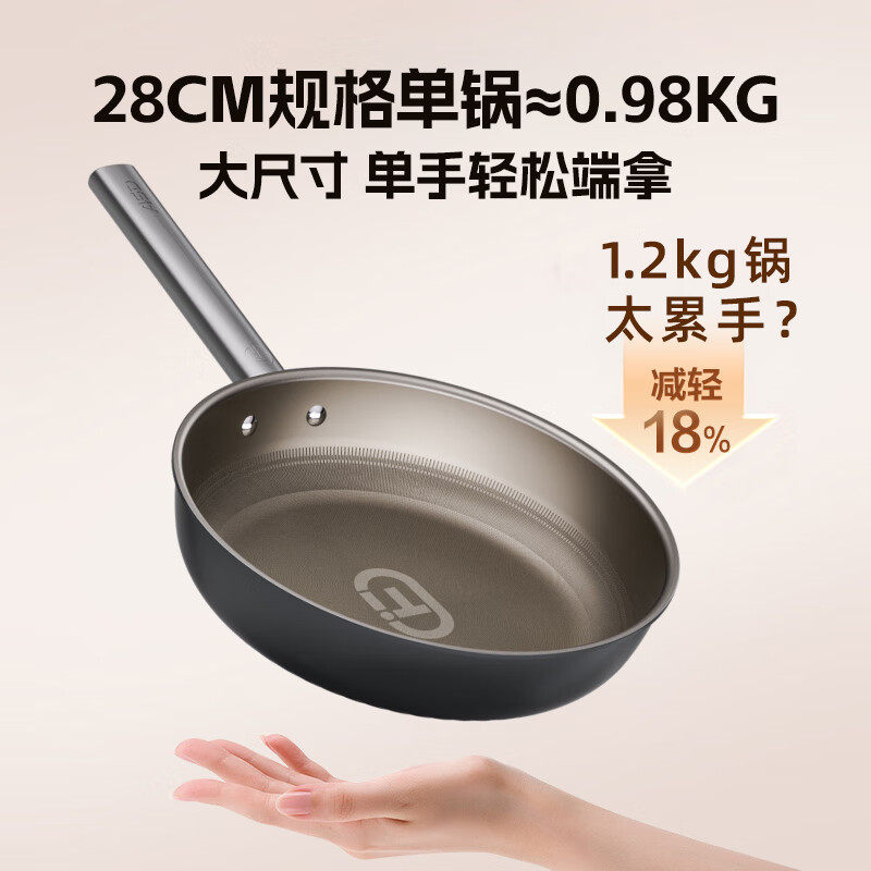 爱仕达平底锅纯钛不粘无涂层煎锅轻量钛炒锅28CM电磁炉燃气通用